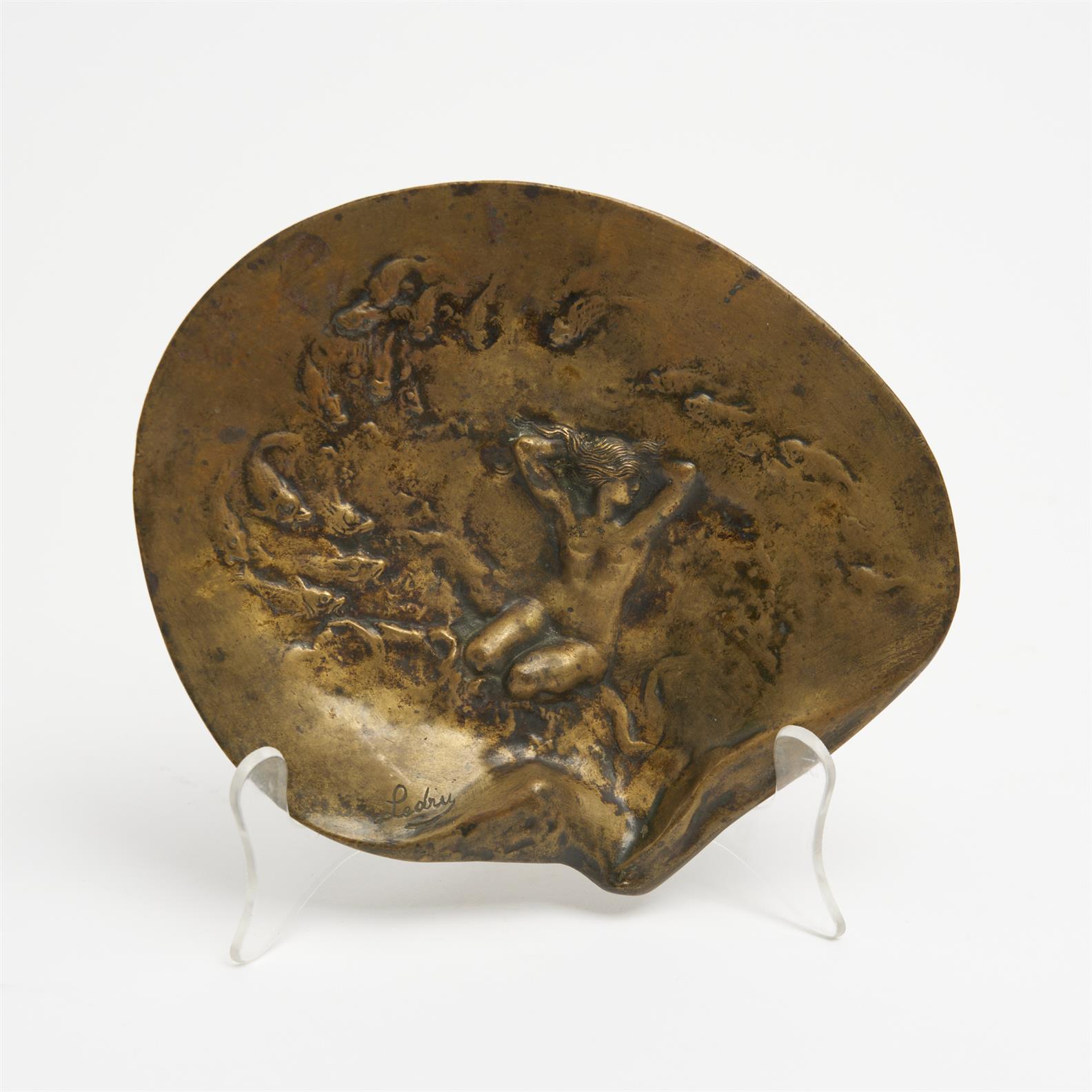 A FRENCH ART NOUVEAU BRONZE VIDE POCHE MODELLED AS A SHELL ENCLOSING A SEA NYMPH, AFTER AUGUSTE LEDRU W.19CM