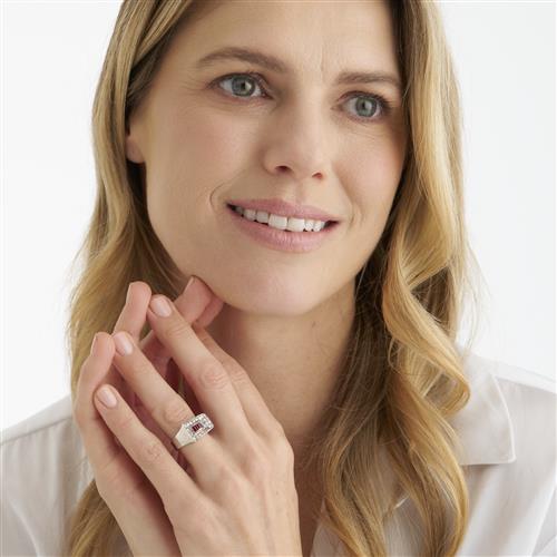 18CT WHITE GOLD, RUBY AND DIAMOND RING