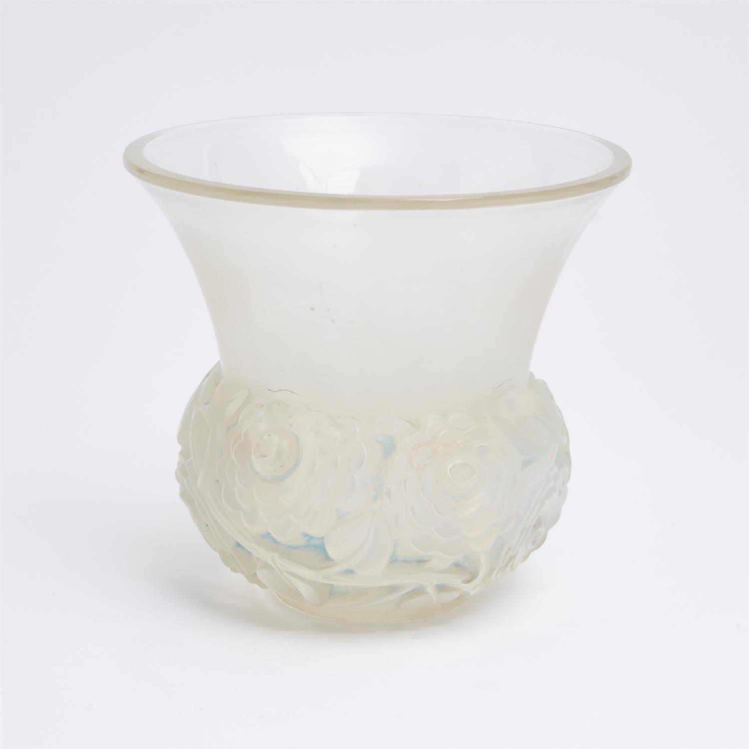 A LALIQUE OPALESCENT RENONCULES VASE, SIGNED R. LALIQUE FRANCE H.15CM