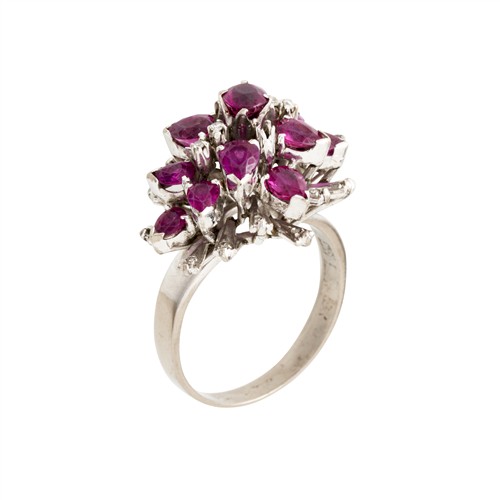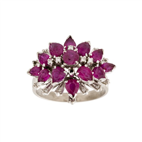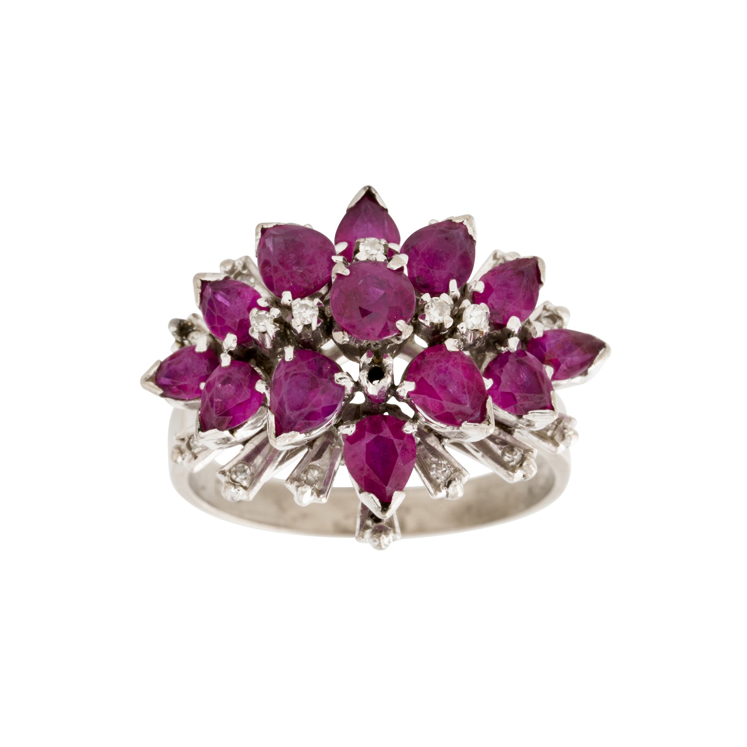 A RUBY AND DIAMOND RING IN 18CT WHITE GOLD, THE RUBIES TOTALLING APPROXIMATELY 3.45CTS, SIZE T, 9.3GMS