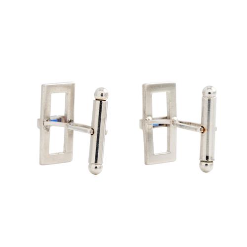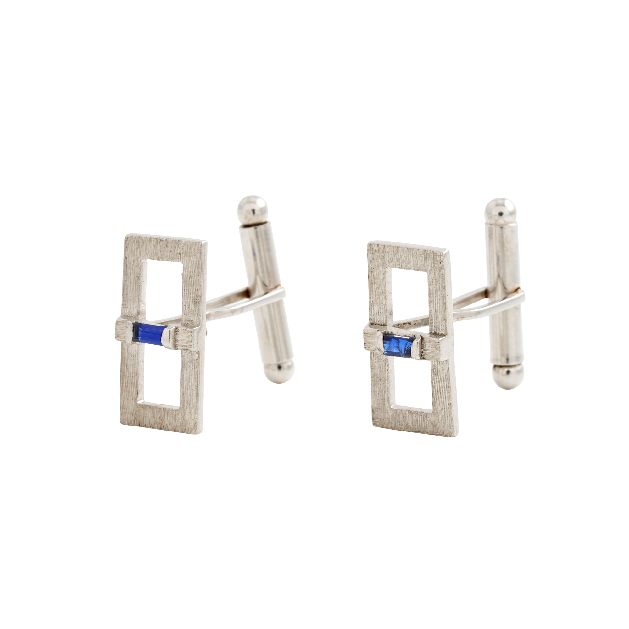 PAIR OF 18CT WHITE GOLD AND SAPPHIRE CUFFLINKS