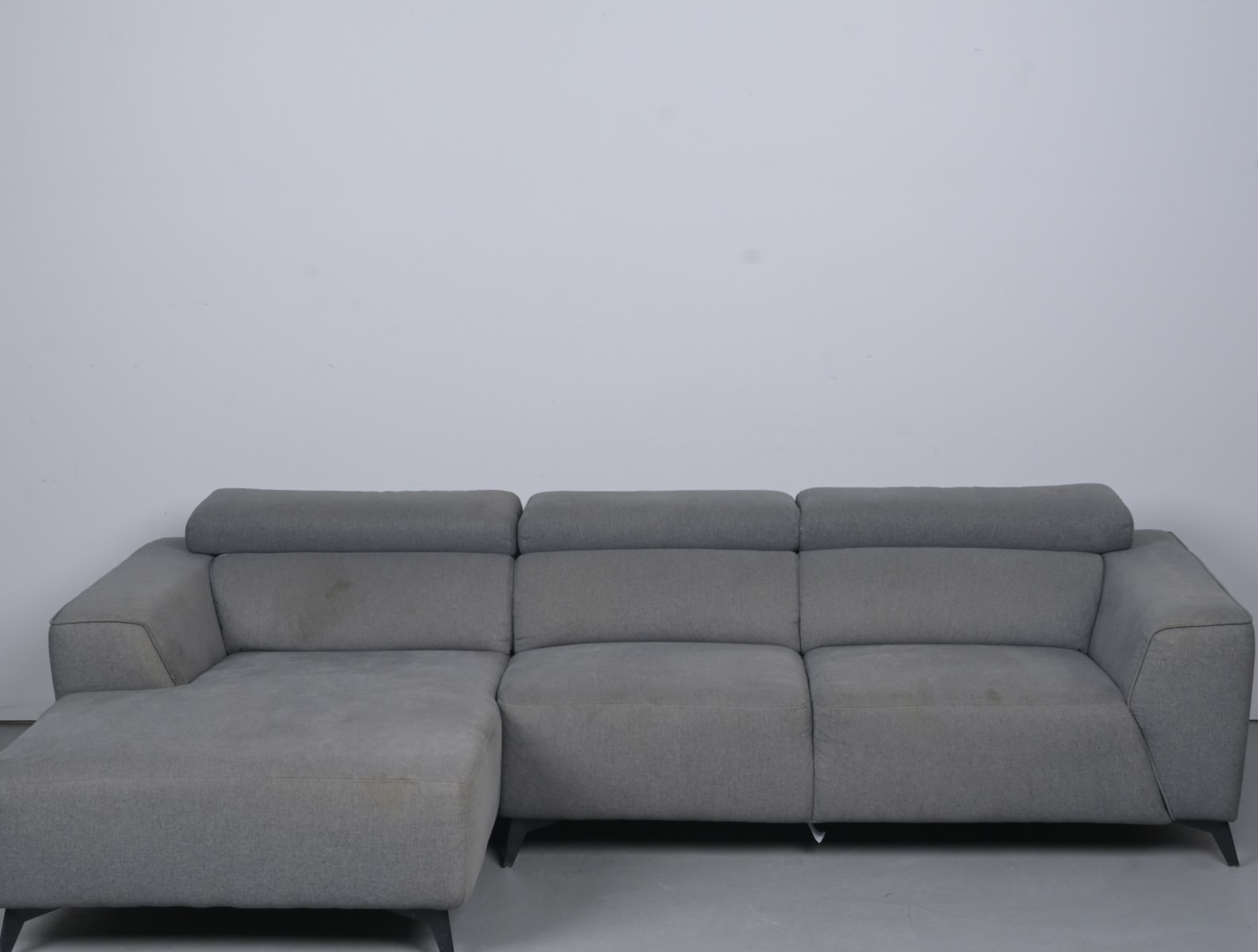 A CONTEMPORARY MODULAR UPHOLSTERED SOFA (A/F) (THIS ITEM MUST BE REMOVED BY CARRIERS AT THE CUSTOMER'S EXPENSE. LEONARD JOEL STAFF CANNOT ASSIST CARRYING THIS ITEM)