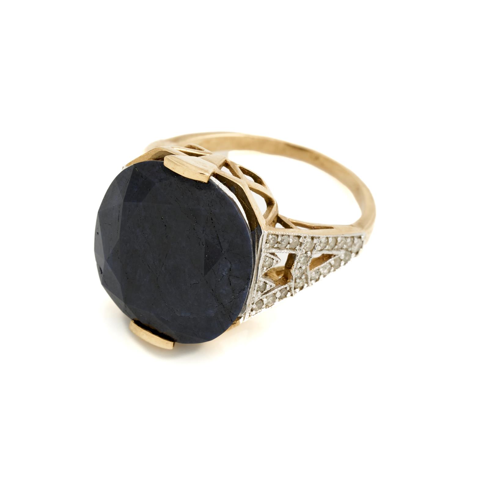 A SAPPHIRE AND DIAMOND RING IN 9CT GOLD, SIZE N, 6.6GMS