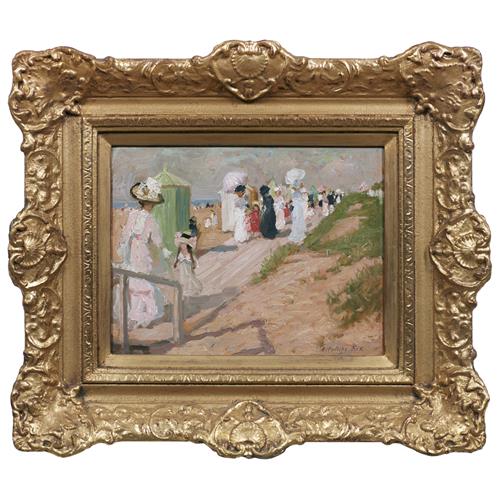 After their marriage in London in 1905, Ethel Carrick Fox (1872-1952) and Emanuel Phillips Fox (1865-1915) settled into a routine of summers spent following the sunlight to crowded French sea resorts, painting and sketching the leisurely crowds on small boards or canvases, then returning to their studio apartment in Paris to paint larger works.