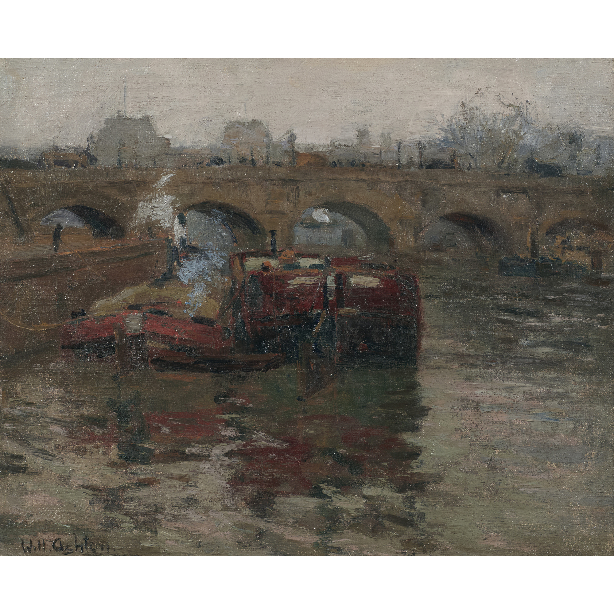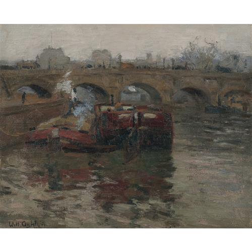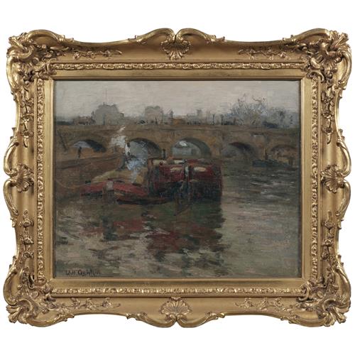 Throughout his distinguished career, Sir John William Ashton (1881-1963), better known as Will Ashton, captured the world in transition; scenes such as bridges and boats, boulevards and harbours are rendered with an immediacy and vibrancy that aligned him with the broader Impressionist movement. Though often considered through the lens of Australian art history, Ashton's artistic identity was deeply international, shaped by years abroad and an enduring fascination with the atmospheric effects of European light and landscape.