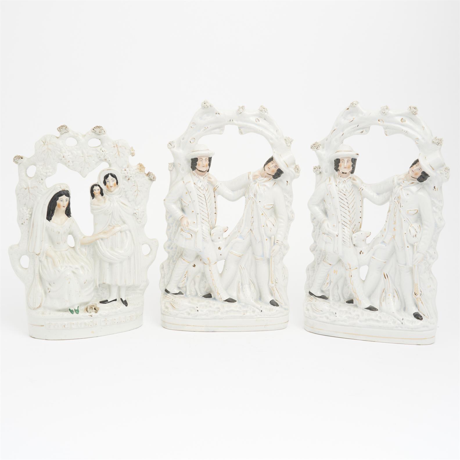 THREE STAFFORDSHIRE ARBOUR FIGURES INCLUDING THE MURDER OF SMITH BY COLLIER, AND 'FORTUNE TELLER' (A/F) H.35CM (TALLEST)