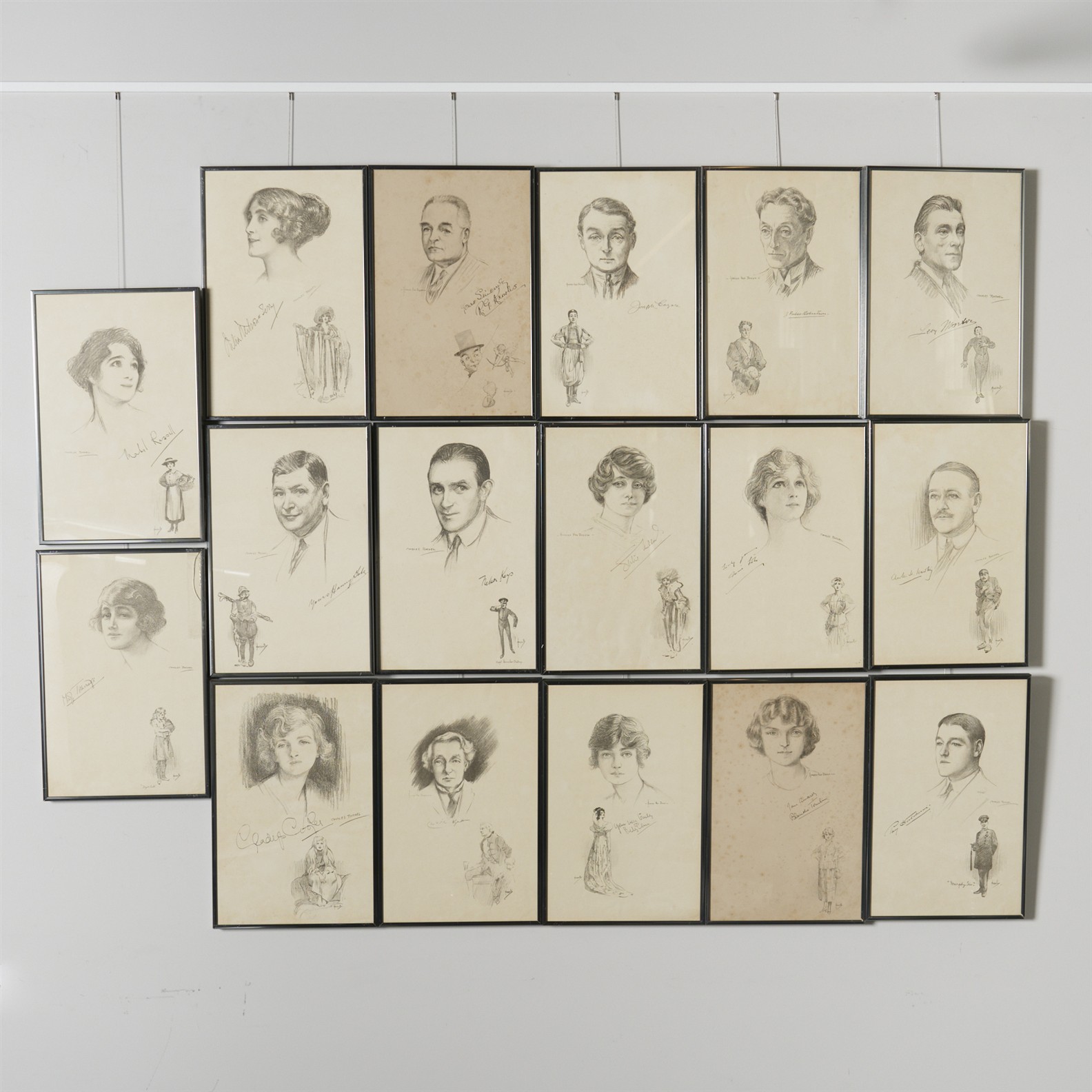 A SUITE OF 17 LITHOGRAPHS OF PORTRAITS OF THEATRICAL FIGURES, AFTER CHARLES BUCHEL, H.43CM (FRAME) (SOME FRAMES A/F)