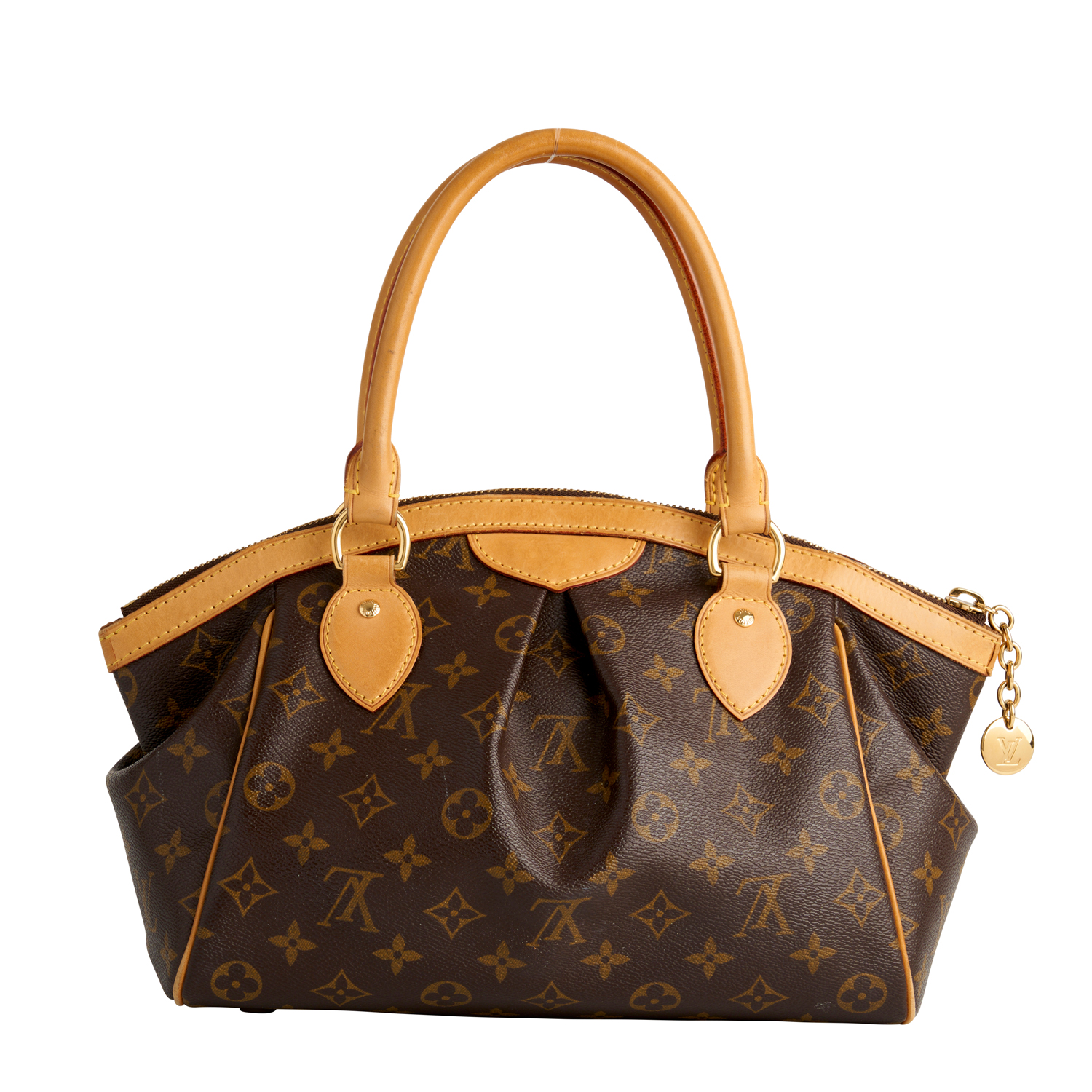 LOUIS VUITTON, A TIVOLI HANDBAG STYLED IN MONOGRAM CANVAS WITH VACHETTA LEATHER TRIM, WITH DUAL ROLLED LEATHER HANDLES, A PLEATED SILHOUETTE, GOLD TONE HARDWARE, AND TOP ZIP CLOSURE, 32 x 24 x 16CM.