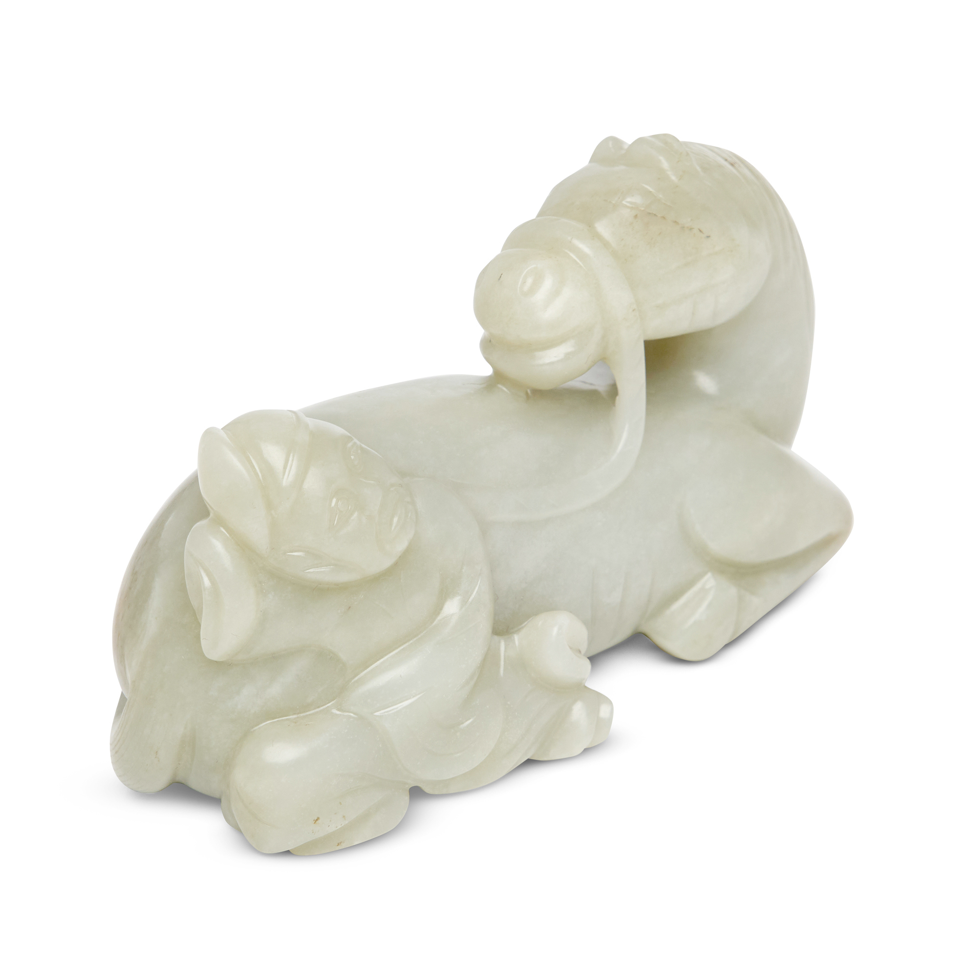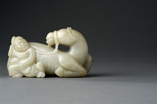 A RARE AND FINE WHITE JADE "HORSE AND FOREIGN GROOM" GROUP, YUAN/MING DYNASTY, 14TH - 16TH CENTURY
