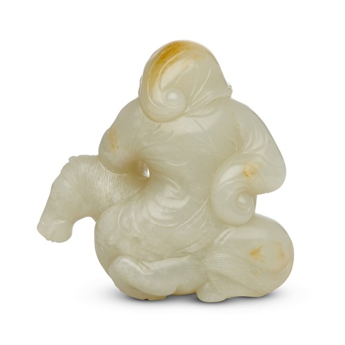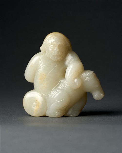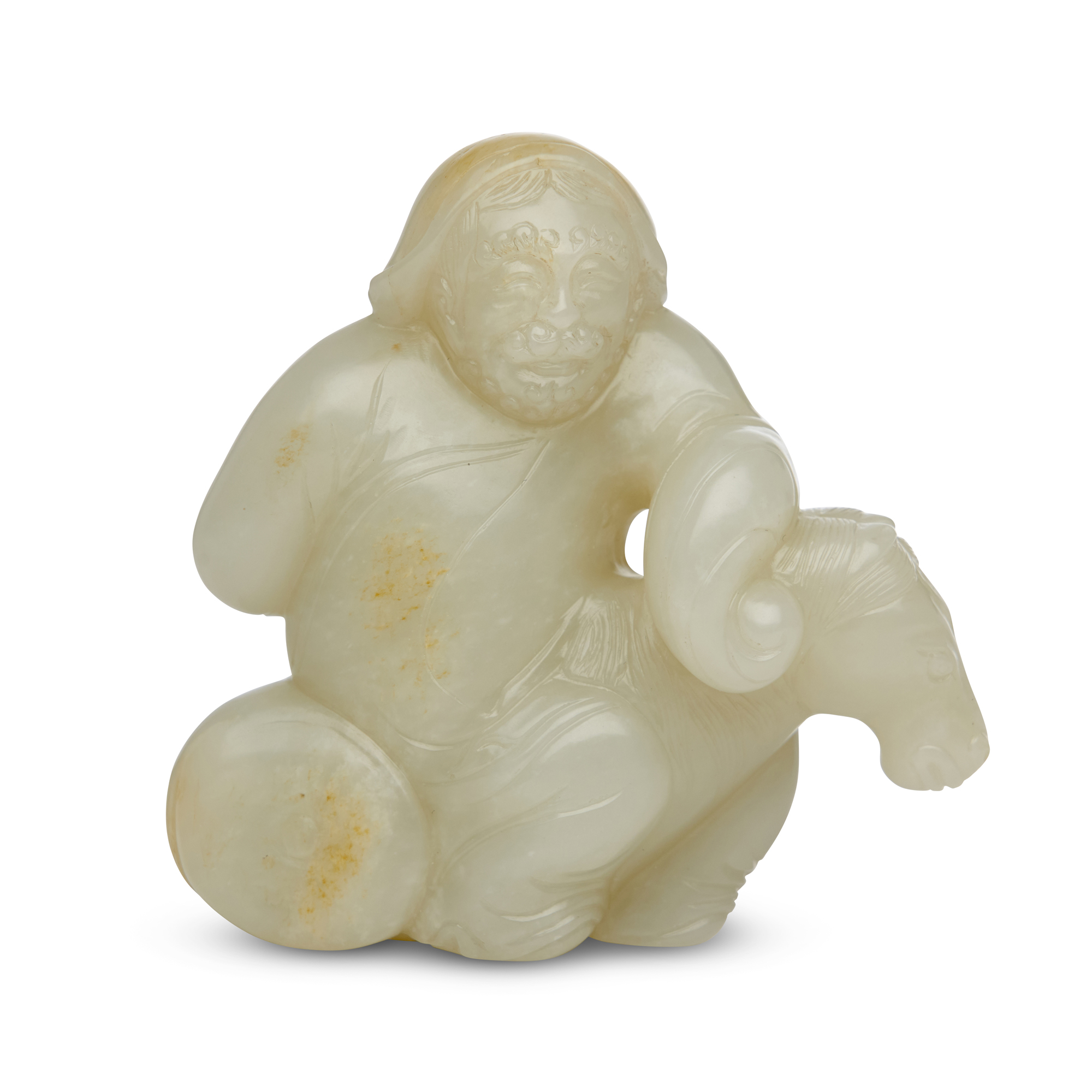 Depictions of foreign figures on horseback are exceptionally rare in jade carvings. For related examples, see a jade carving of a foreigner riding an elephant, Bonhams Hong Kong, 30 May 2017, lot 65; and a foreigner with a dog from the same sale, lot 64. Additionally, for a standing jade figure of a foreigner, see Sotheby's Hong Kong, 28 February 2023, lot 3018; also see Christie's New York, 21 Sep 2023, lot 812.