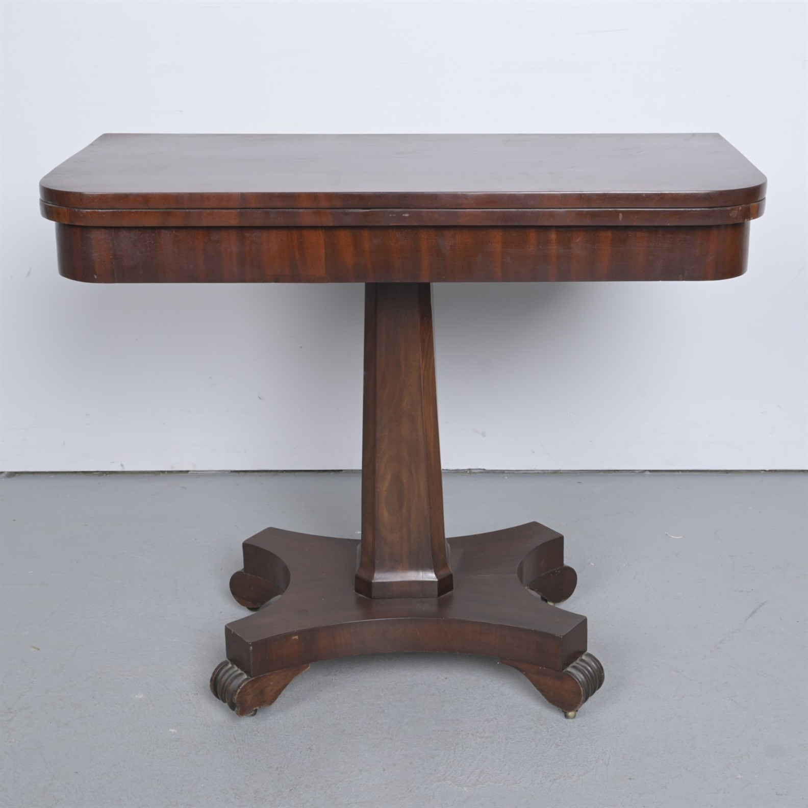 AN EARLY VICTORIAN MAHOGANY GAMES TABLE (75CM H X 92CM W X 46CM D)
