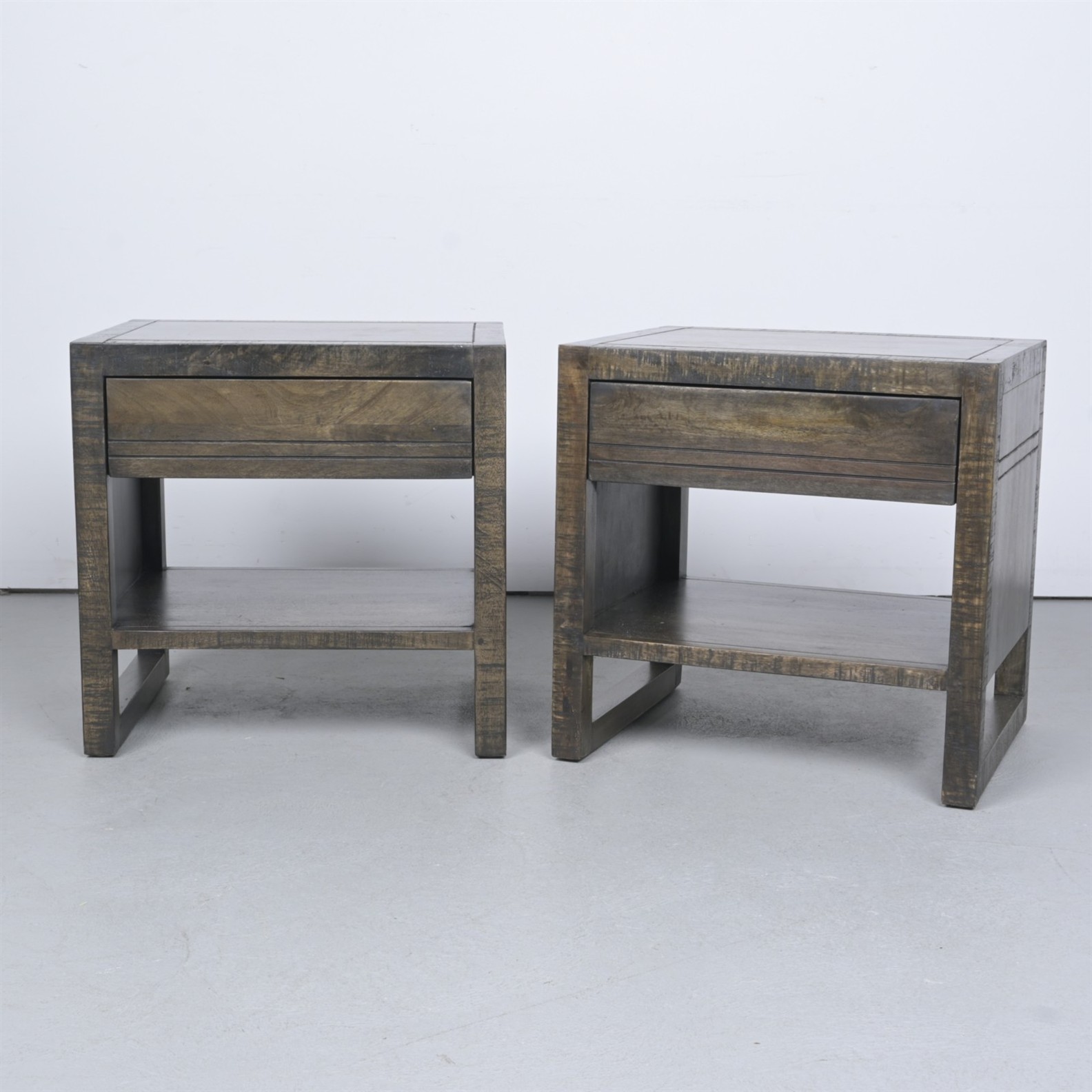 A PAIR OF CONTEMPORARY SINGLE DRAWER BEDSIDE TABLES (60H X 60W X 50D CM)