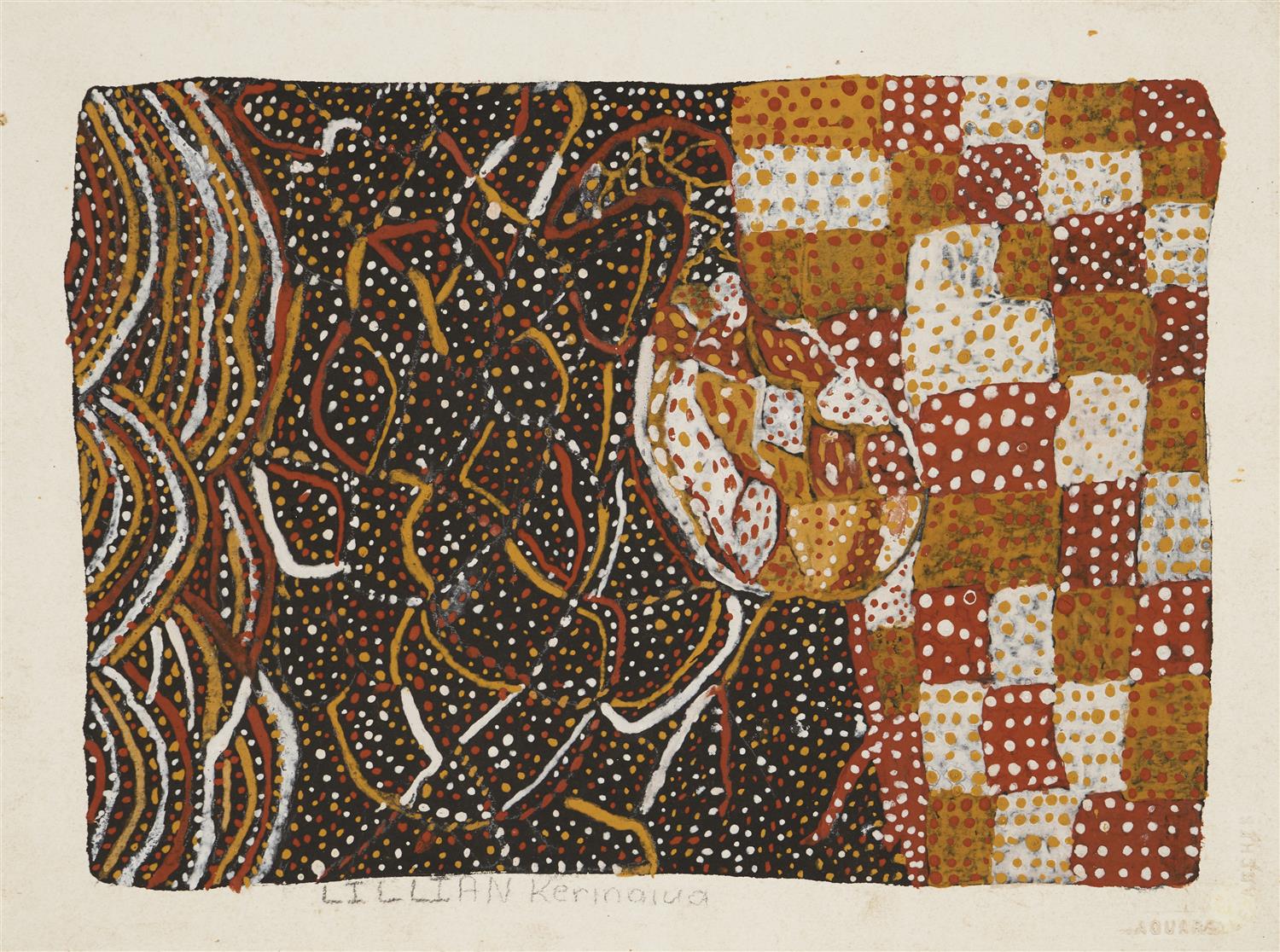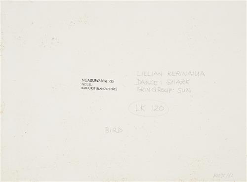 inscribed verso with artist's name and Ngaruwanajirri Art Centre stamp and cat. no. LK120 verso
