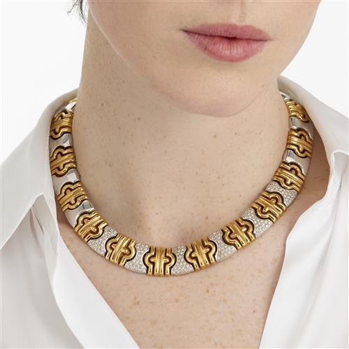 VINTAGE 18CT TWO-COLOUR GOLD AND DIAMOND NECKLACE, ITALY
