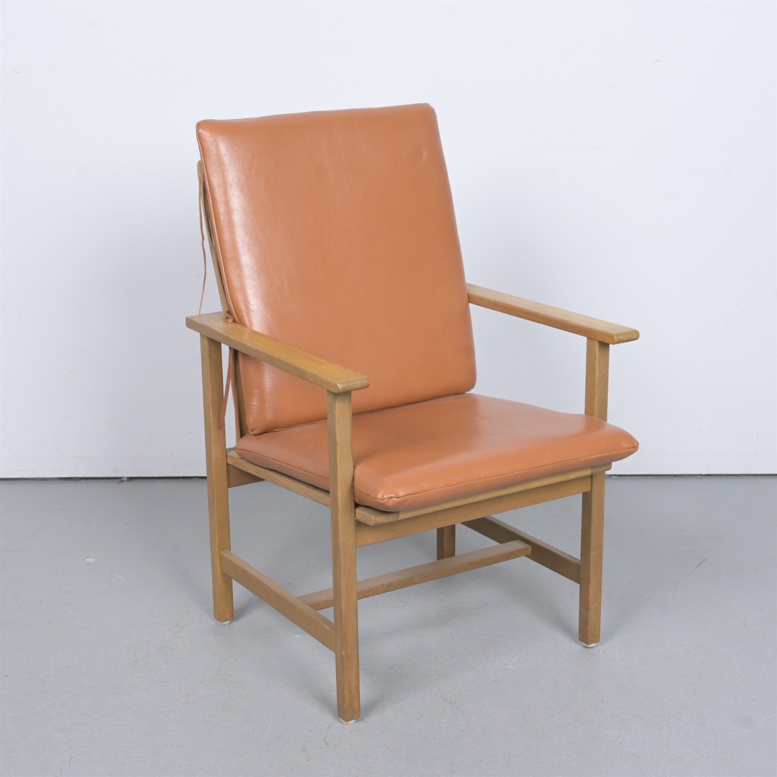 A BORGE MOGENSEN MODEL 3233 OAK ARMCHAIR - LEATHER CUSHIONS (100H X 62W X 62D CM) - WITH ORIGINAL CUSHIONS IN WOOL FABRIC
