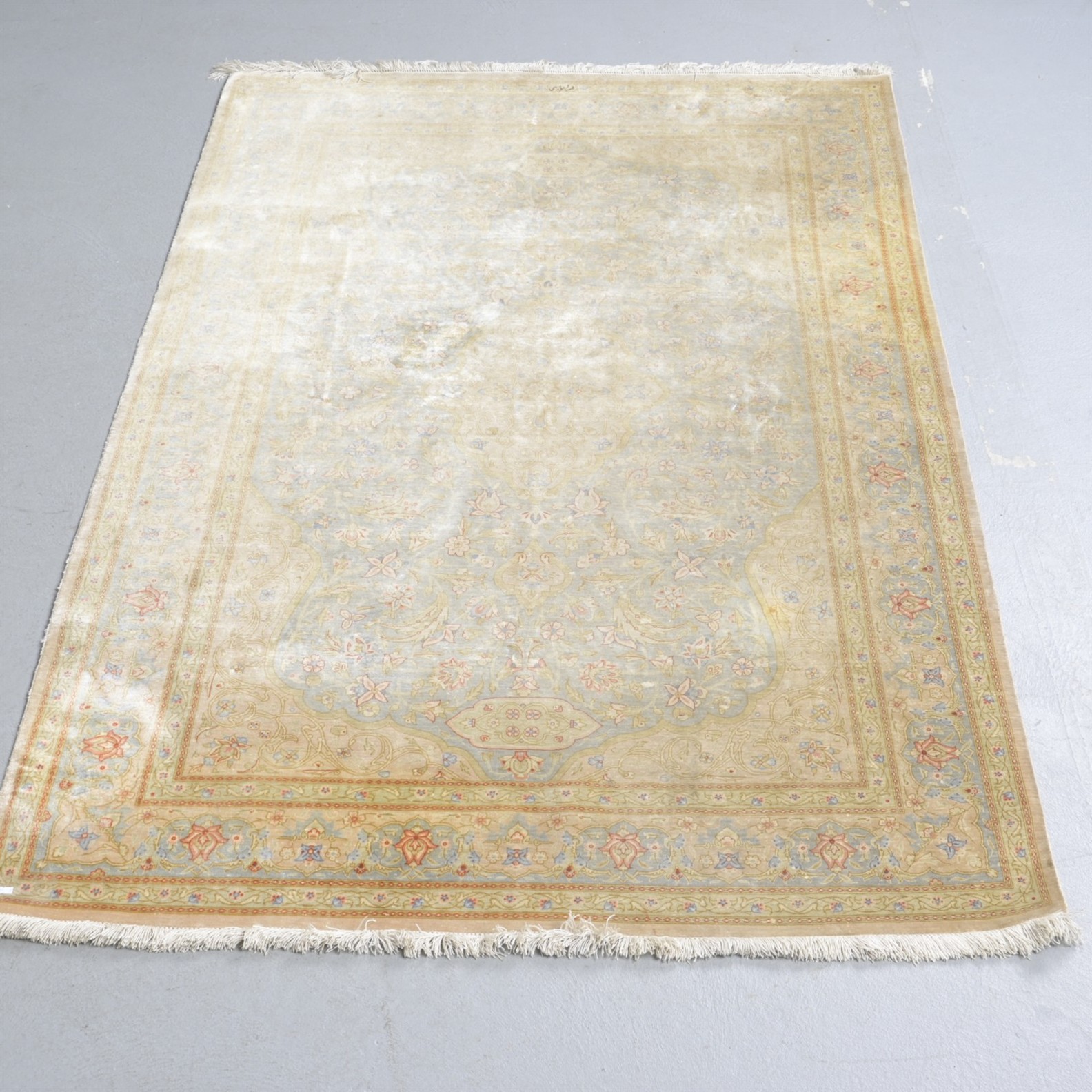 A PERSIAN SILK QUM RUG (A/F) (210L X 130W CM)