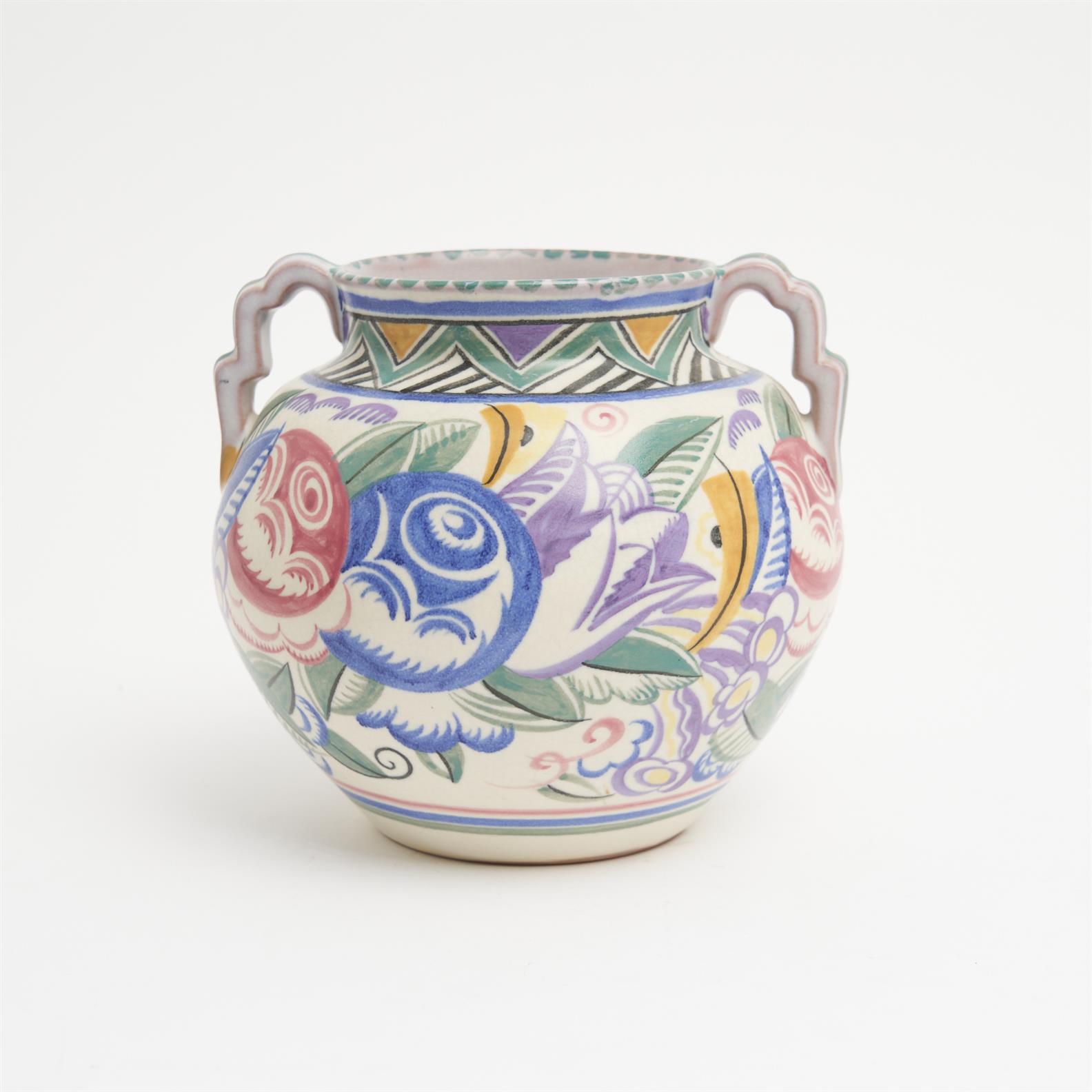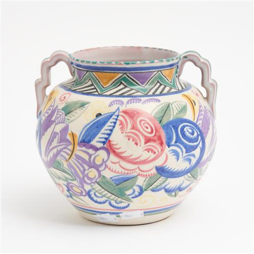 A CARTER STABLER POOLE POTTERY TWIN HANDLED VASE DESIGNED BY TRUPA ADAMS C.1928 H.18CM