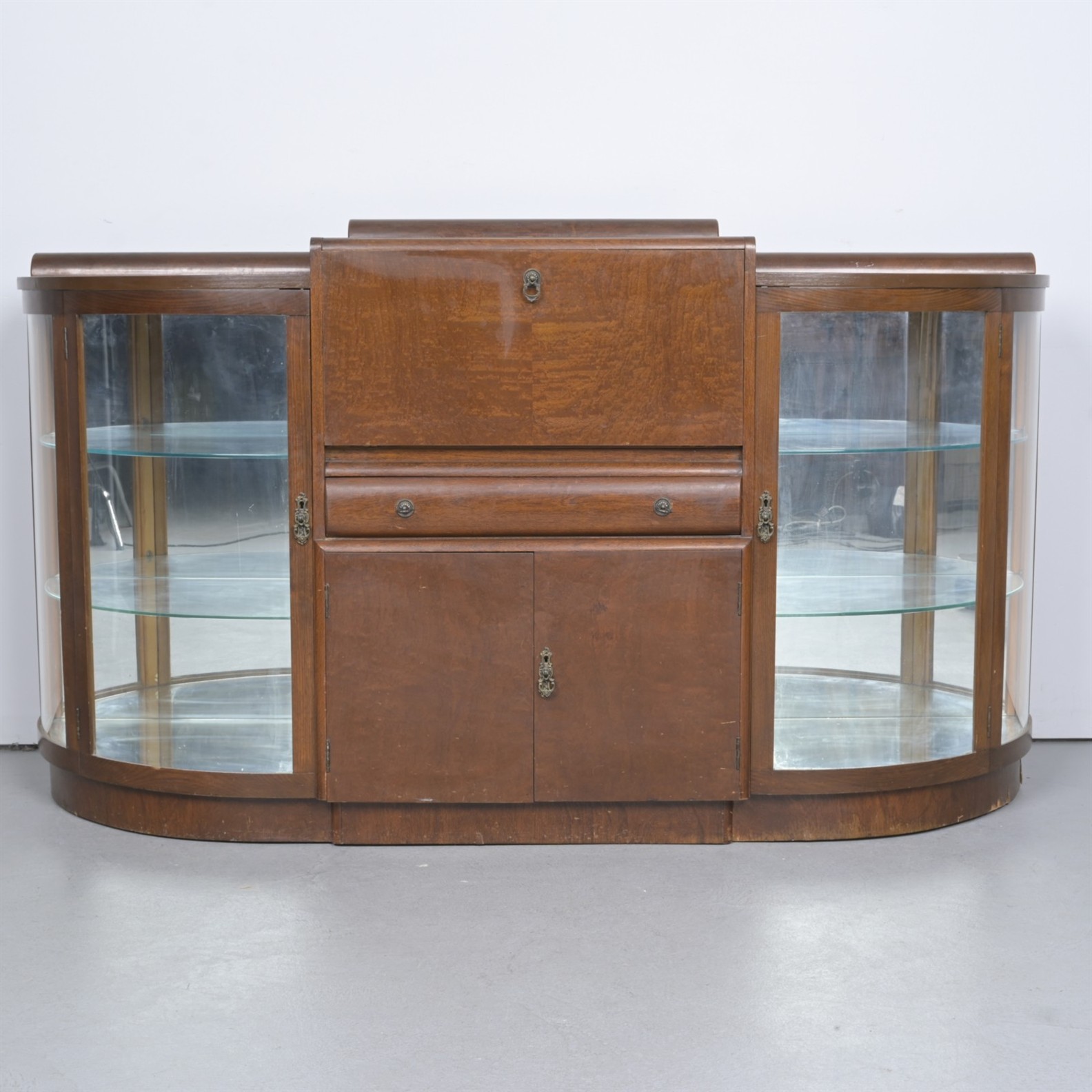 A WALNUT ART DECO SIDEBOARD (103H X 184W X 50D CM) (THIS ITEM MUST BE REMOVED BY CARRIERS AT THE CUSTOMER'S EXPENSE. LEONARD JOEL STAFF CANNOT ASSIST CARRYING THIS ITEM)