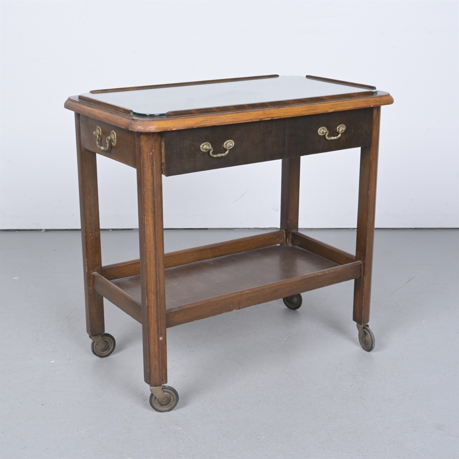 AN EARLY 20th CENTURY MAHOGANY AUTO TROLLEY (73H X 74W X 44D CM)