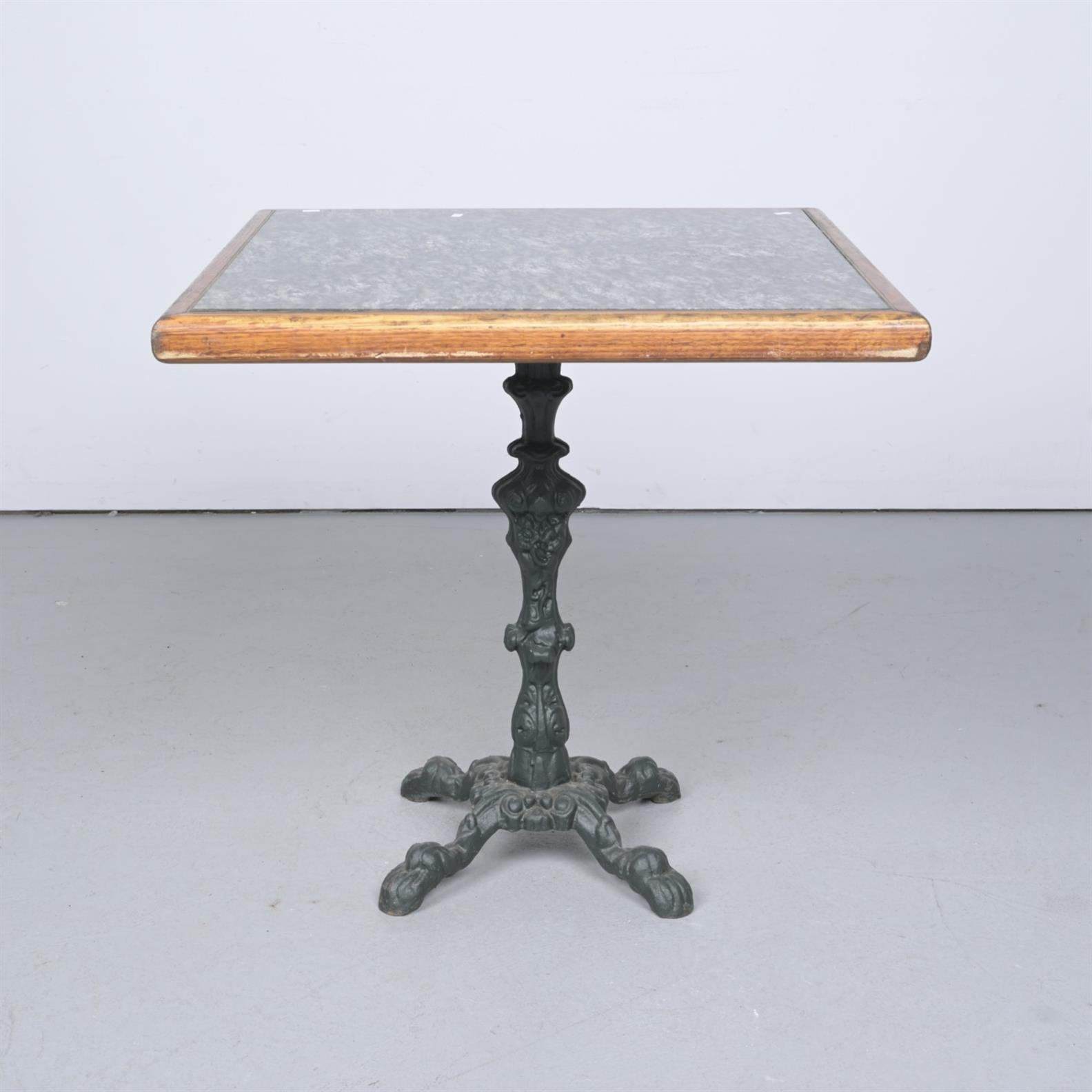 A GRANITE TOP TABLE ON CAST IRON BASE (75H X 75D CM) (THIS ITEM MUST BE REMOVED BY CARRIERS AT THE CUSTOMER'S EXPENSE. LEONARD JOEL STAFF CANNOT ASSIST CARRYING THIS ITEM)
