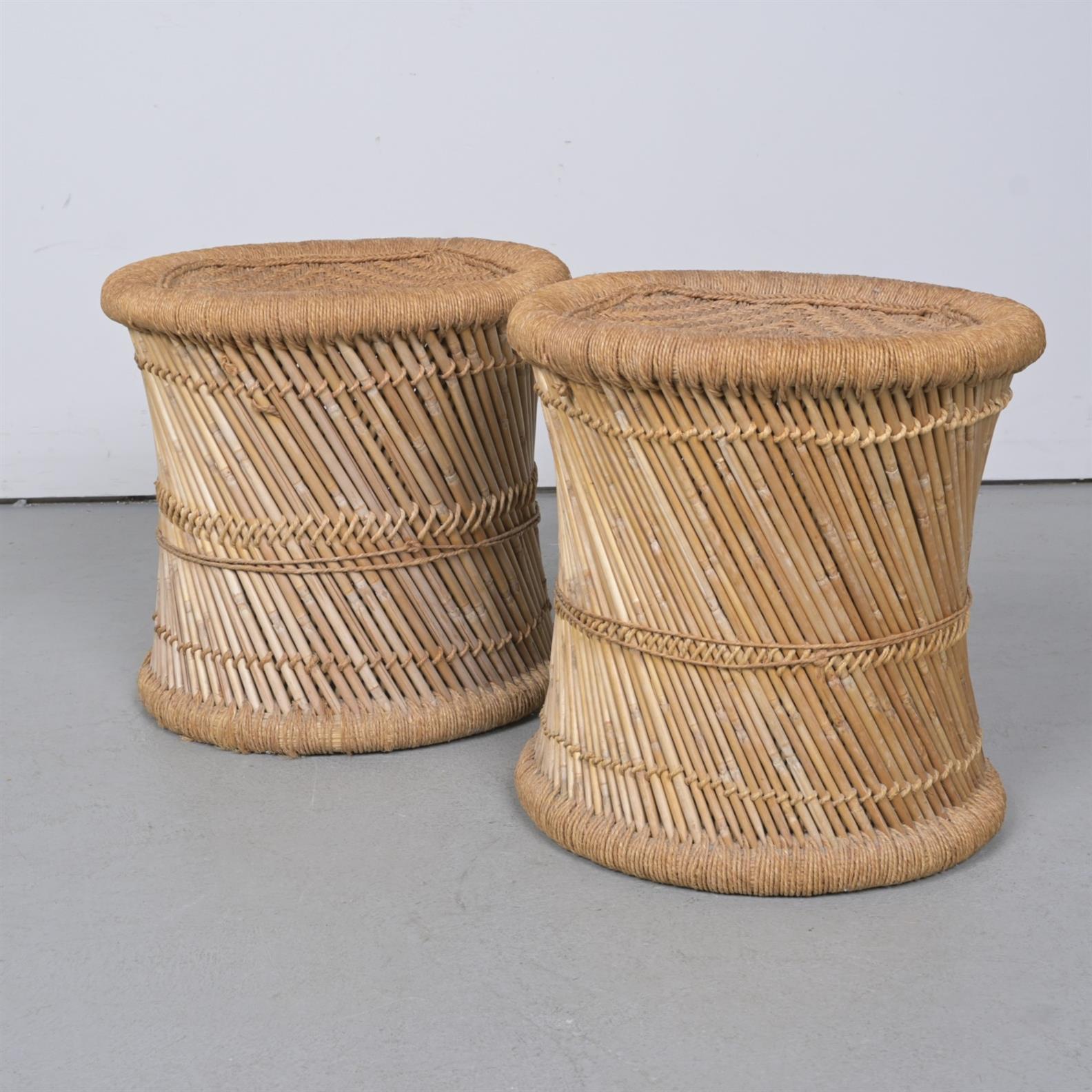 A PAIR OF RATTAN STOOLS (42H X 45D CM)
