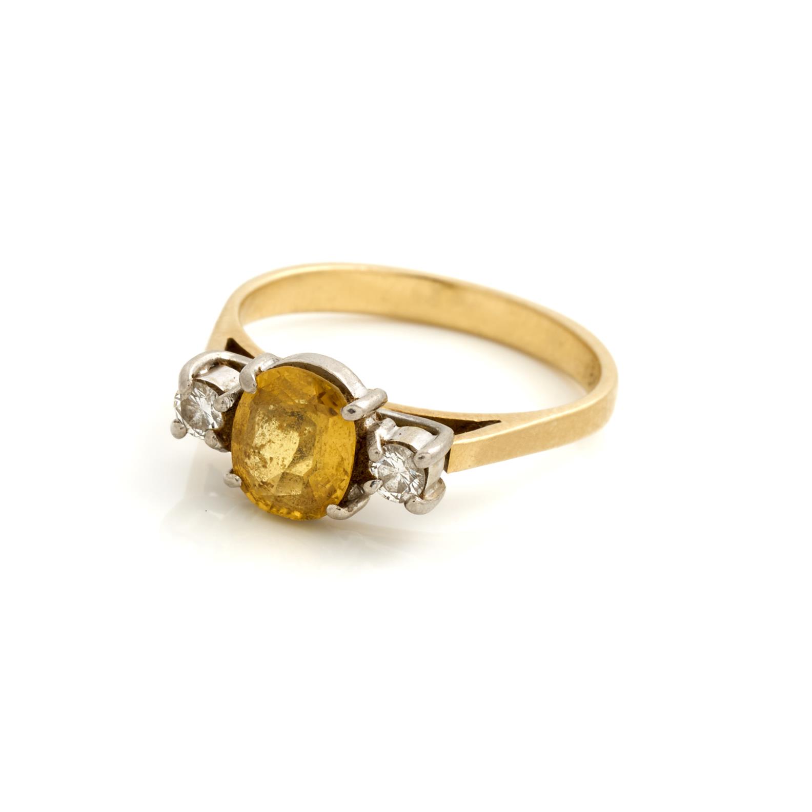 A YELLOW SAPPHIRE RING IN 18CT GOLD, SIZE N, 5.2GMS