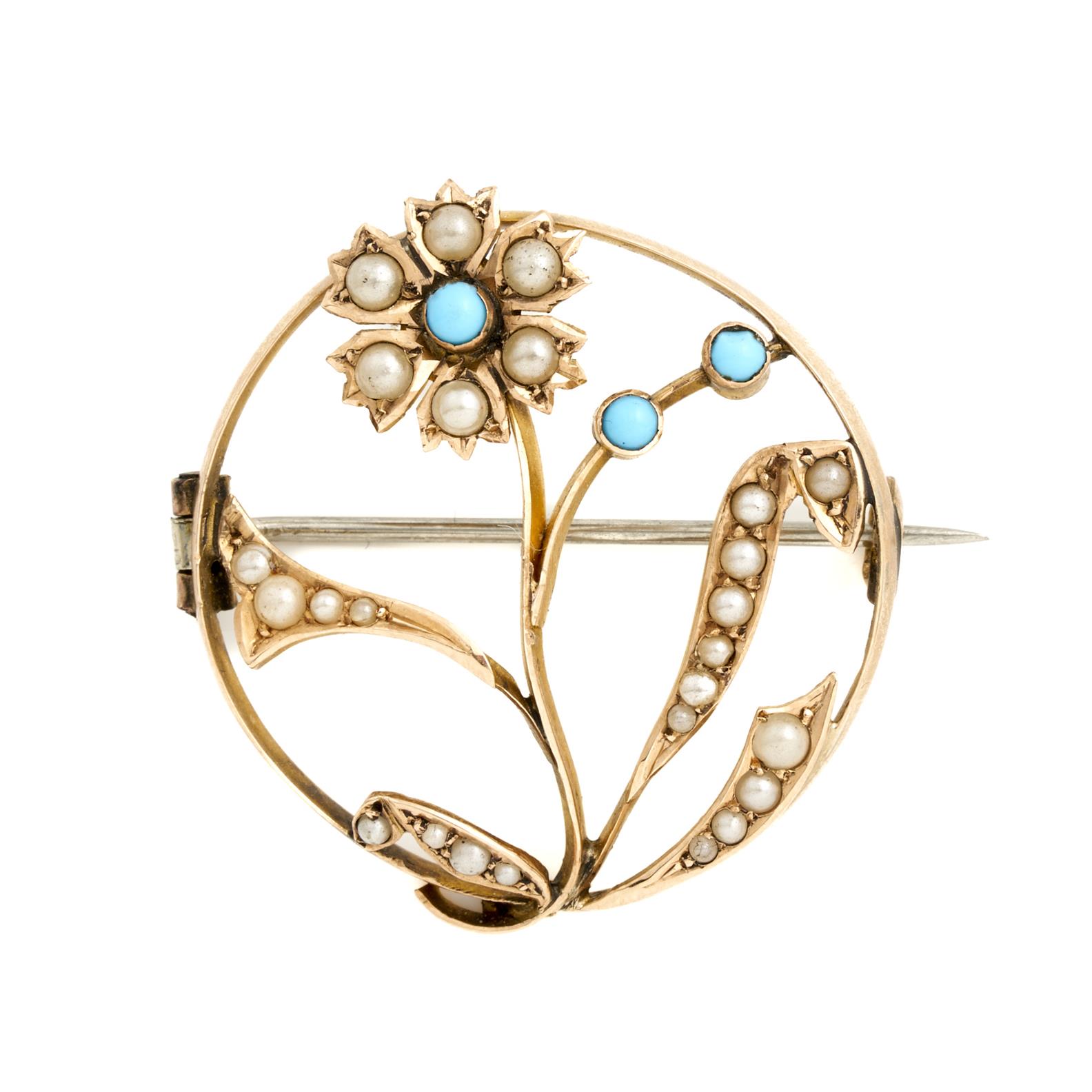 A SEED PEARL BROOCH IN 15CT GOLD, 30MM X 30MM, 4.2GMS