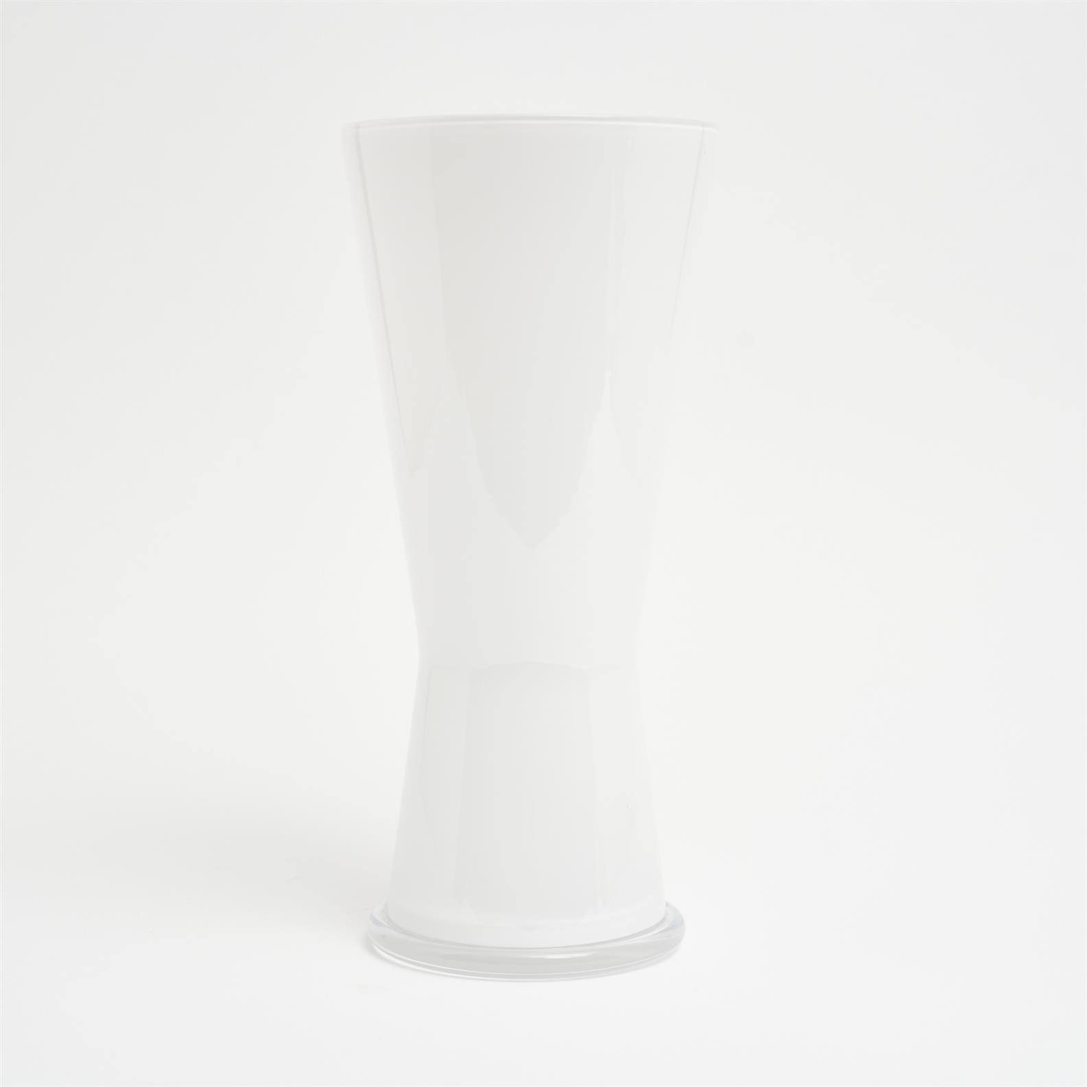AN ORREFORS WHITE CASED GLASS VASE H.29.5CM