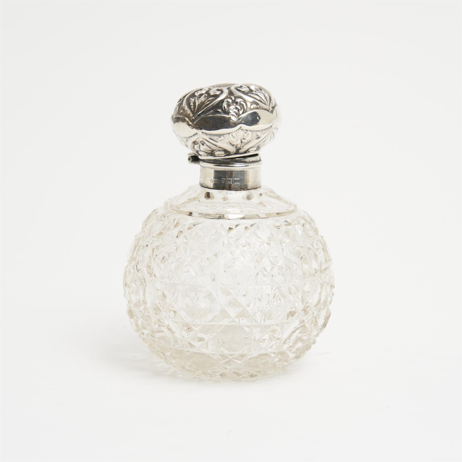 A STERLING SILVER TOP CUT CRYSTAL PERFUME BOTTLE WITH ORIGINAL STOPPER H.12CM