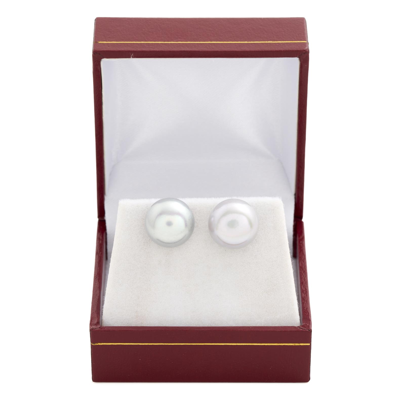 A PAIR OF PEARL EARRINGS IN SILVER GILT TO POST AND PLASTIC FITTINGS, THE PEARLS MEASURING 10MM