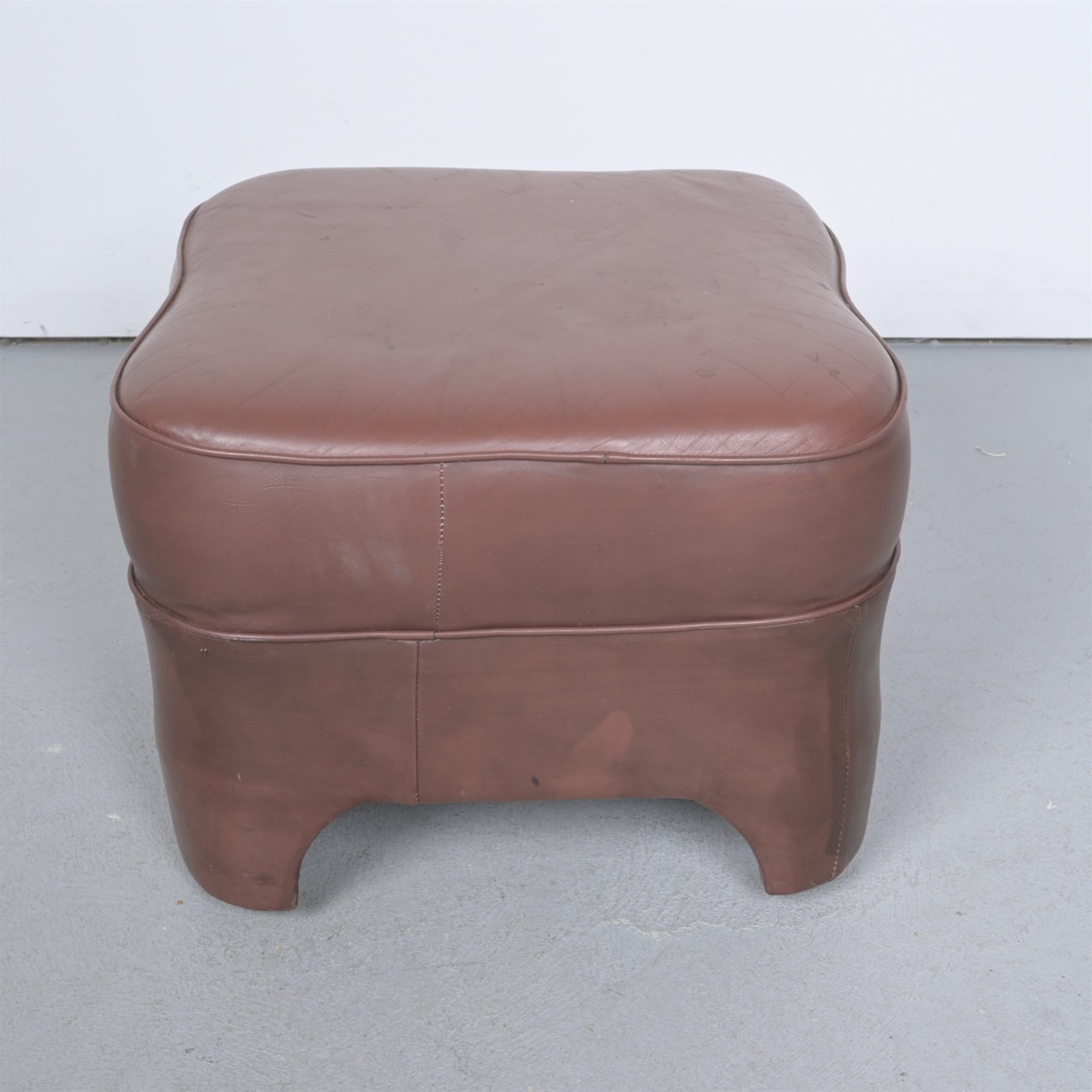 A LEATHER OTTOMAN (A/F) (39CM H X 55CM W X 51CM D)