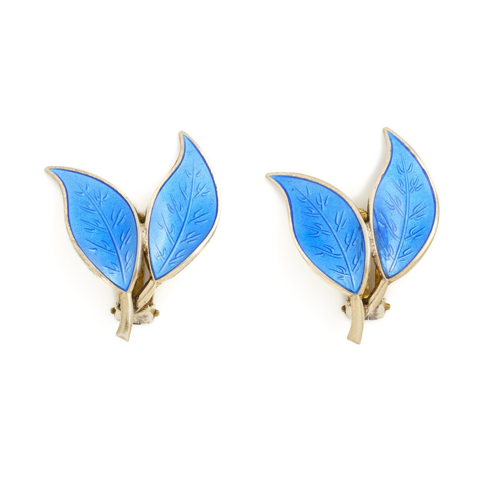 DAVID ANDERSEN, A PAIR OF ENAMELLED EARRINGS IN SILVER GILT, TO CLIP FITTINGS, 40MM X 20MM