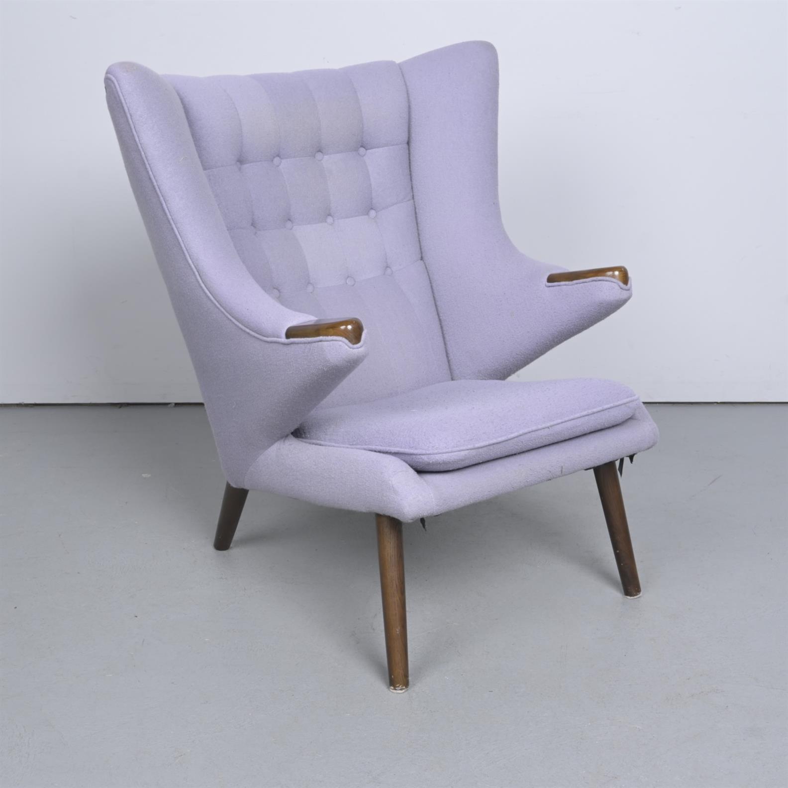 AN UPHOLSTERED LOUNGE CHAIR IN THE STYLE OF HANS WEGNER 'PAPA BEAR' CHAIR (100H X 90W X 85D)