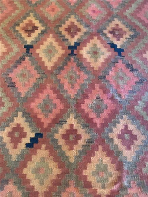 HAND WOVEN TRIBAL WEAVE FROM THE FARS PROVINCE WITH 100% WOOL AND NATURAL VEGETABLE DYES WITH ALL-OVER DIAMOND-SHAPED PATTERNS.