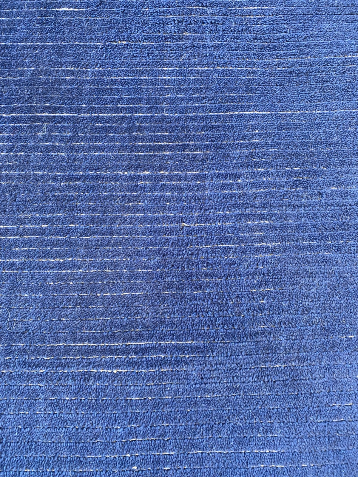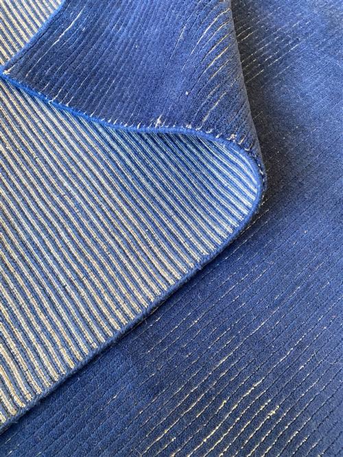 WOOL PILE. DENSE BLUE PILE WITH BEIGE-TONED SILK TEXTURED LOOPS THROUGHOUT.