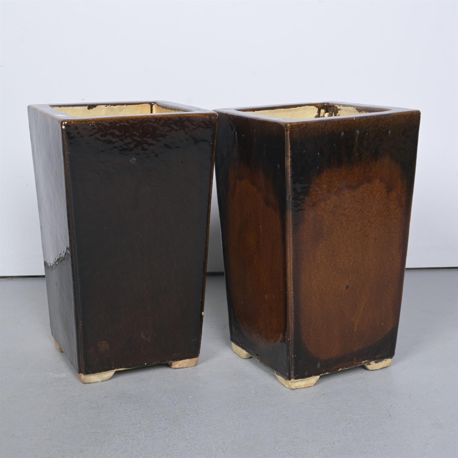 TWO GLAZED TERRACOTTA PLANTERS (51H X 30W X 30D) (THIS ITEM MUST BE REMOVED BY CARRIERS AT THE CUSTOMER'S EXPENSE. LEONARD JOEL STAFF CANNOT ASSIST CARRYING THIS ITEM)