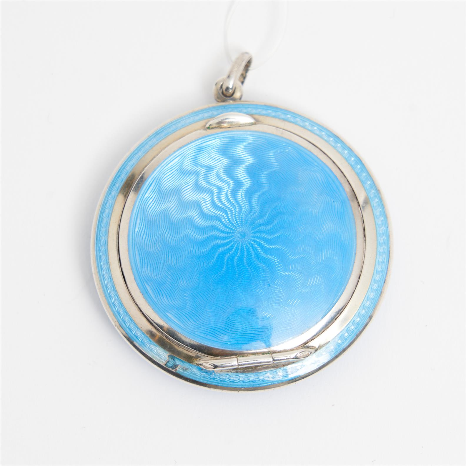 A 925 SILVER GIULLOCHE ENAMEL COMPACT (SMALL CHIP TO ENAMEL) DIA.4.5CM