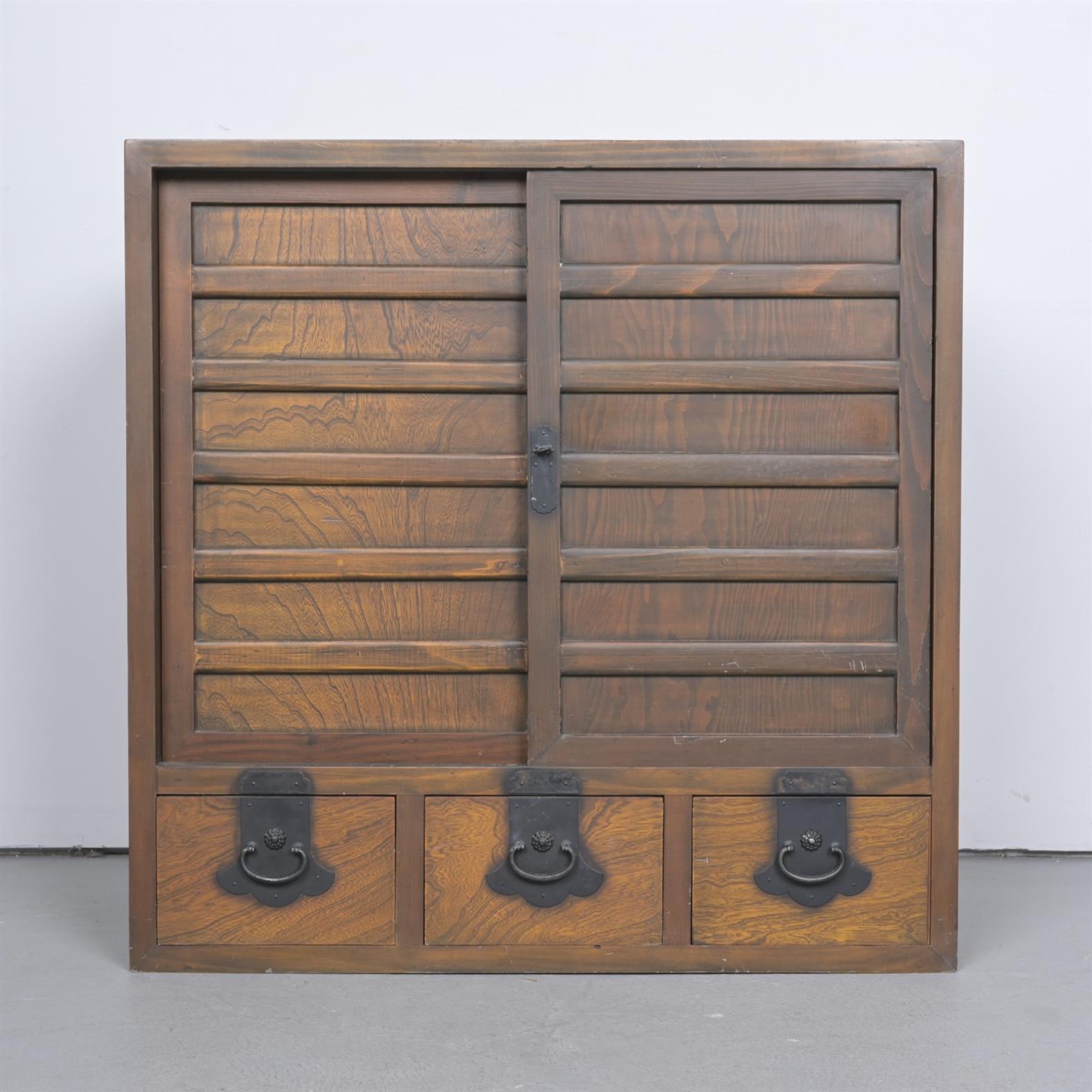 A JAPANESE TANSU (91H X 91W X 43D CM) (THIS ITEM MUST BE REMOVED BY CARRIERS AT THE CUSTOMER'S EXPENSE. LEONARD JOEL STAFF CANNOT ASSIST CARRYING THIS ITEM)