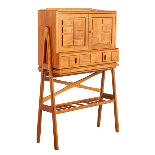 A NEW GUINEA WALNUT DRINKS CABINET ON STAND BY SCHULIM KRIMPER