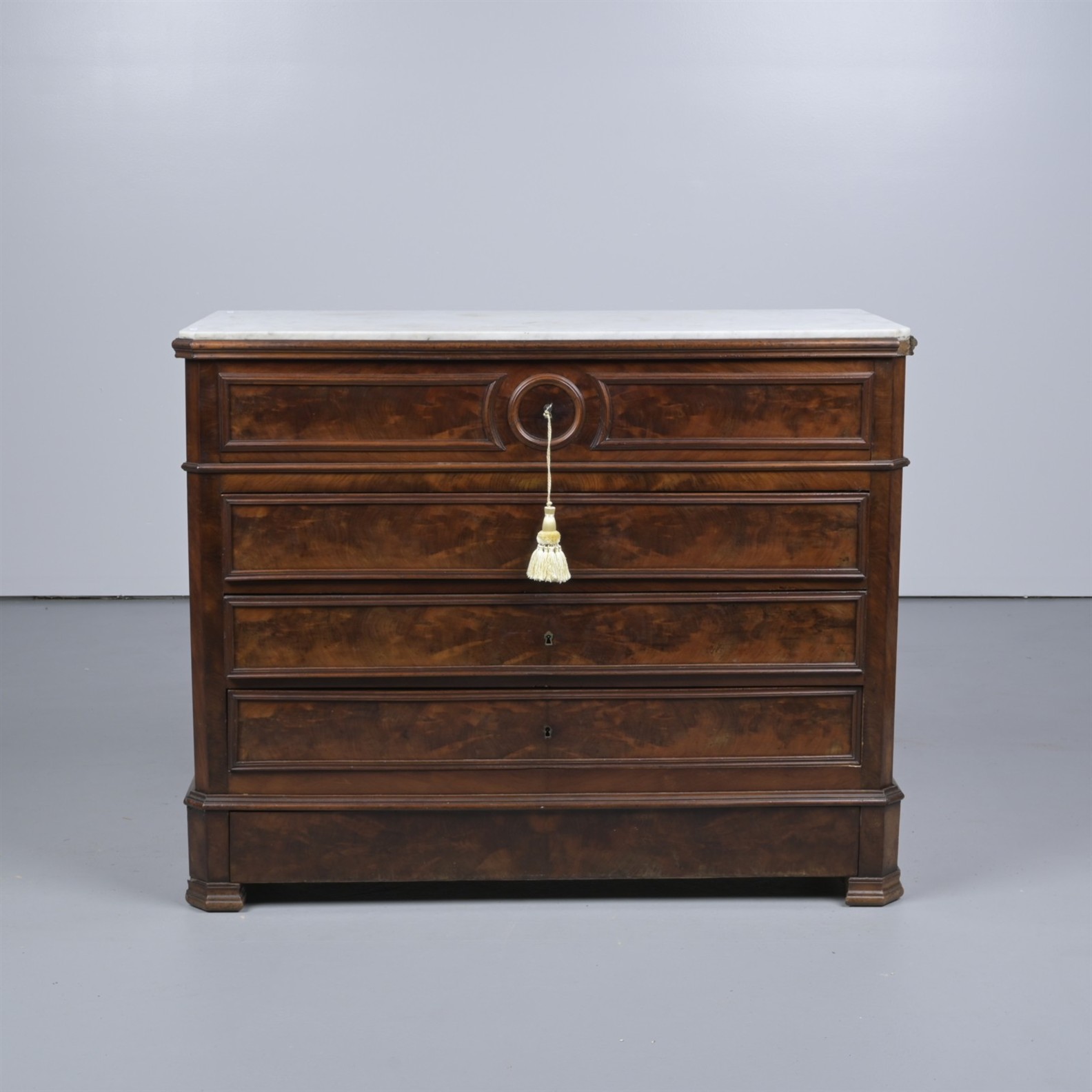 A LOUIS PHILIPPE MARBLE-TOPPED MAHOGANY SECRETAIRE COMMODE (A/F) (95CM H X 117CM W X 50CM D) (THIS ITEM MUST BE REMOVED BY PROFESSIONAL CARRIERS OR CLIENTS. LEONARD JOEL STAFF CANNOT ASSIST WITH CARRYING OR DELIVERY OF THIS ITEM)