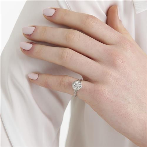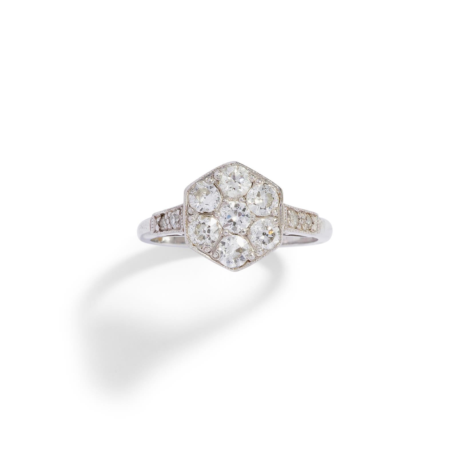 Designed as a flowerhead embellished with old-cut diamonds, the diamonds together weighing approximately 0.74 carats, mounted in 18ct white gold, size H1/2.