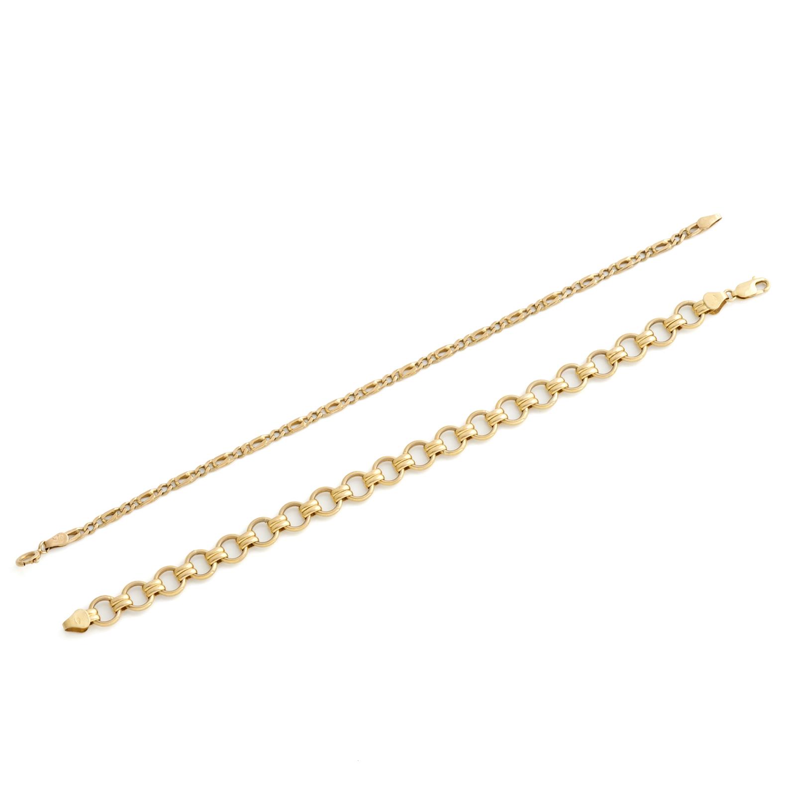 TWO BRACELETS IN 9CT GOLD, EACH 19MM,10.1GMS