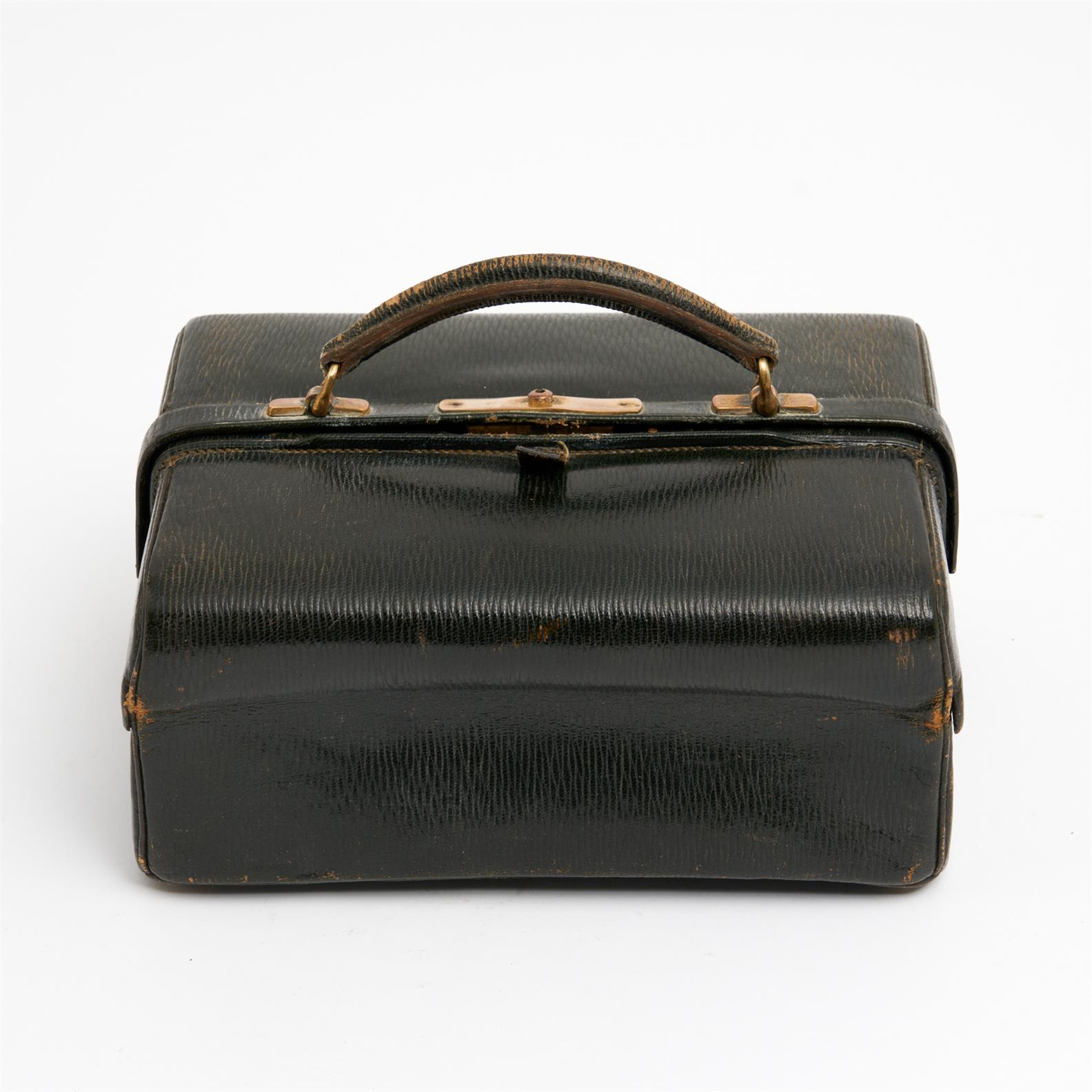 AN EARLY 20TH CENTURY GLADSTONE STYLE TRAVELLING JEWELLERY CASE L.25CM