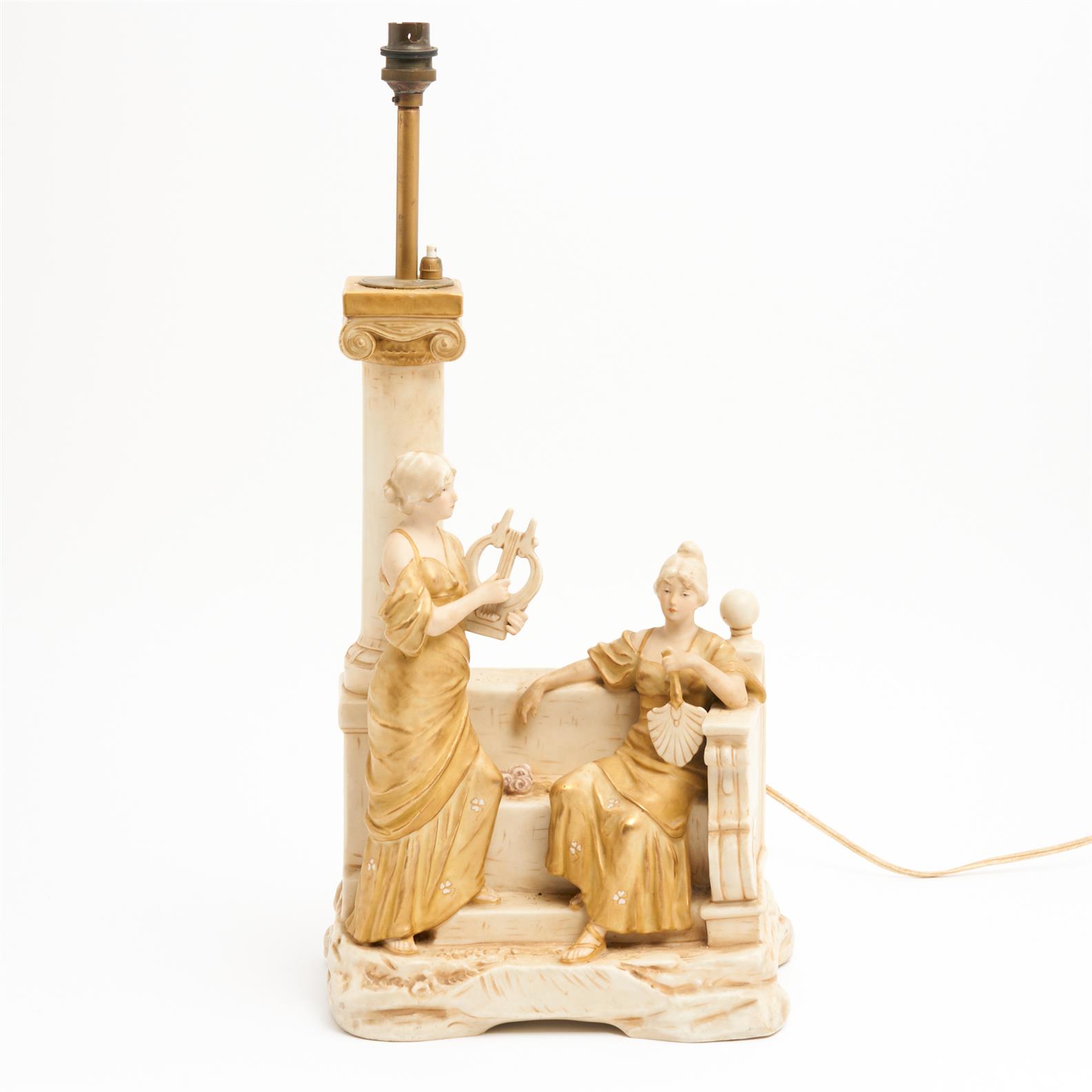 A ROYAL DUX BISQUE PORCELAIN FIGURAL LAMP BASE H.55CM