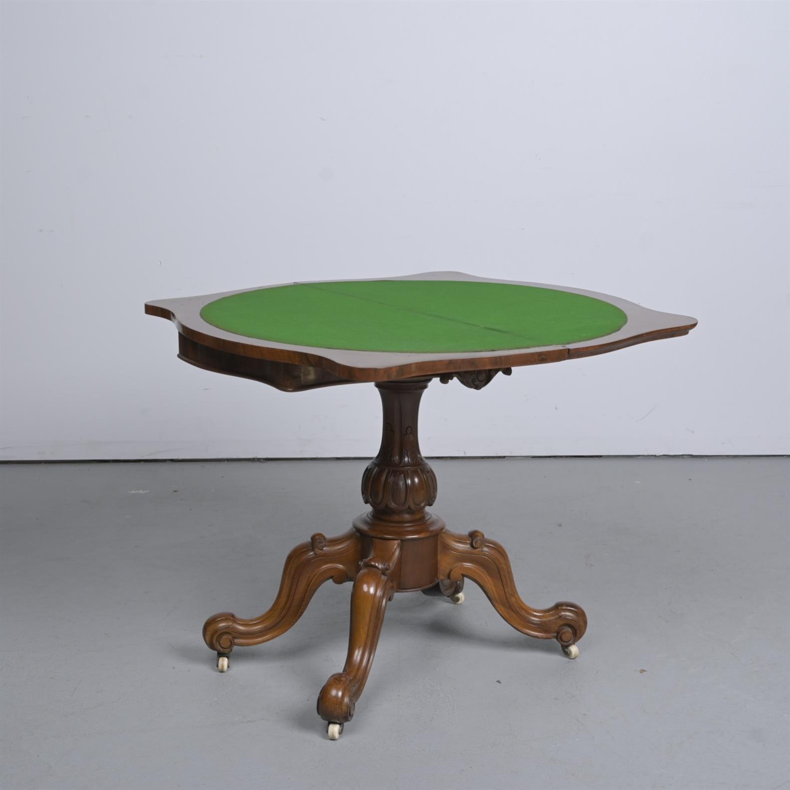 A VICTORIAN FIGURED WALNUT GAMES TABLE (72CM H X 87C M W)