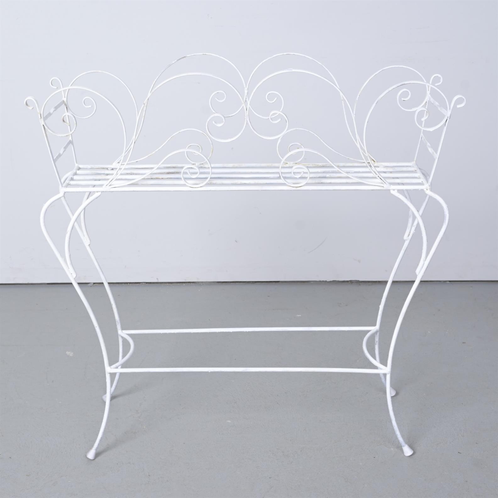 A WROUGHT IRON PLANT STAND (92H X 90W X 23D CM)