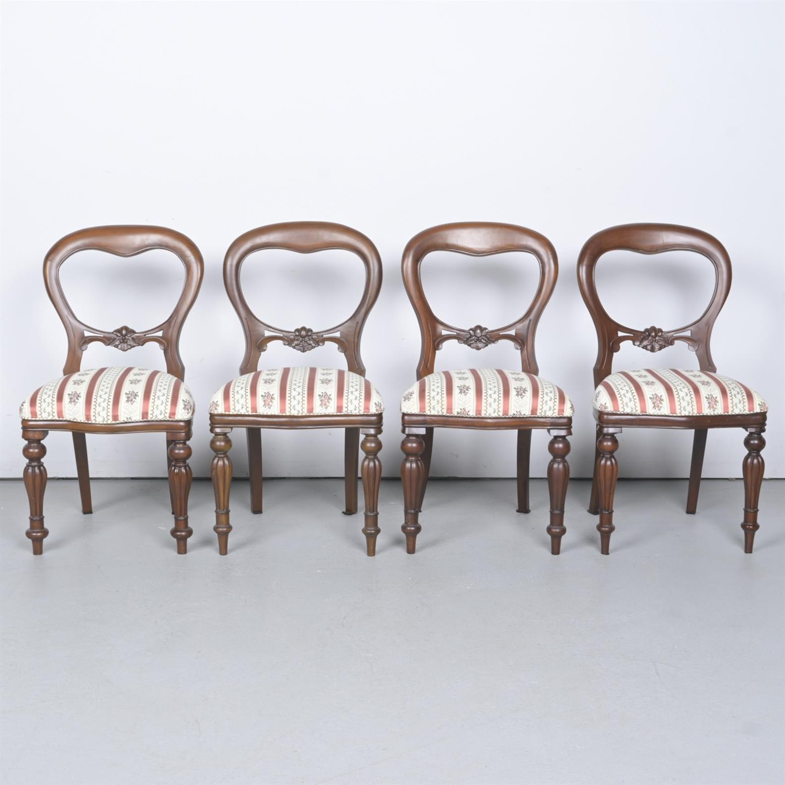 A SET OF FOUR VICTORIAN-STYLE DINING CHAIRS (90H X 48W X 50D CM)