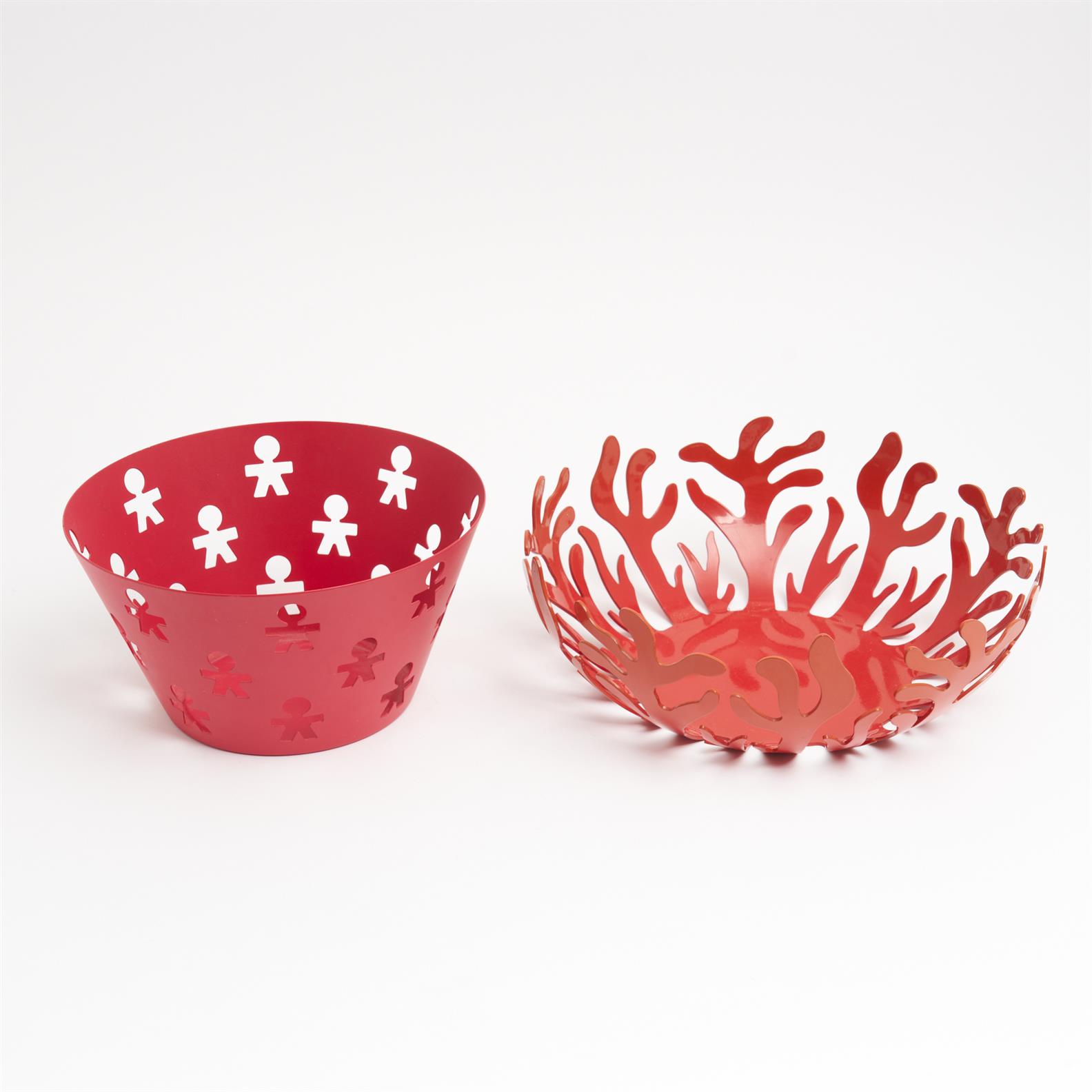 A PAIR OF RED ALESSI BOWLS (MEDITERRANO AND GIROTONDO), BY KING KONG AND EMMA SILVESTRIS, MADE IN ITALY DIA.29CM (LARGEST)