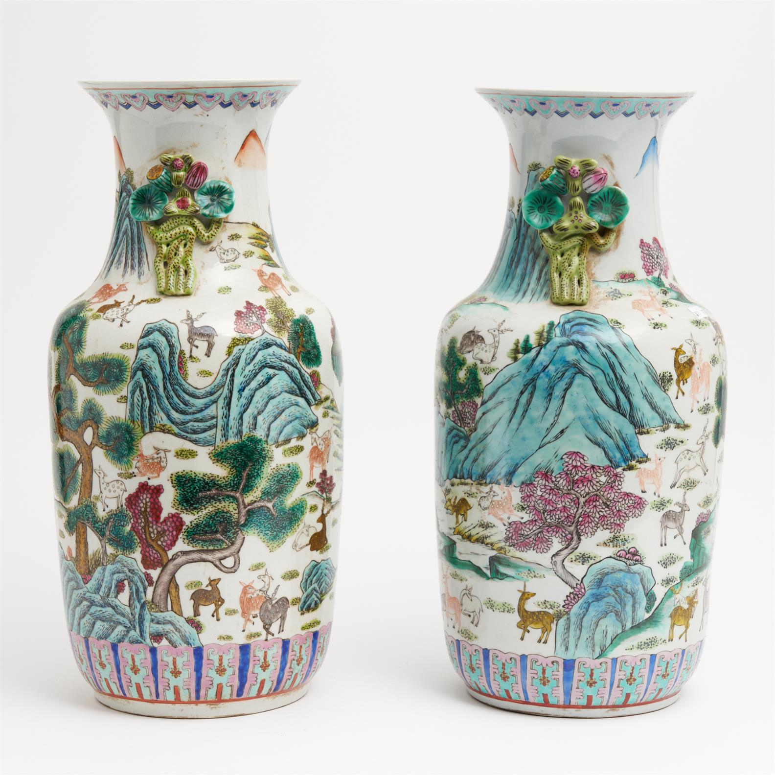 A LARGE PAIR OF CHINESE FAMILLE ROSE VASES, 20TH CENTURY, (ONE CHIPPED) H.46CM