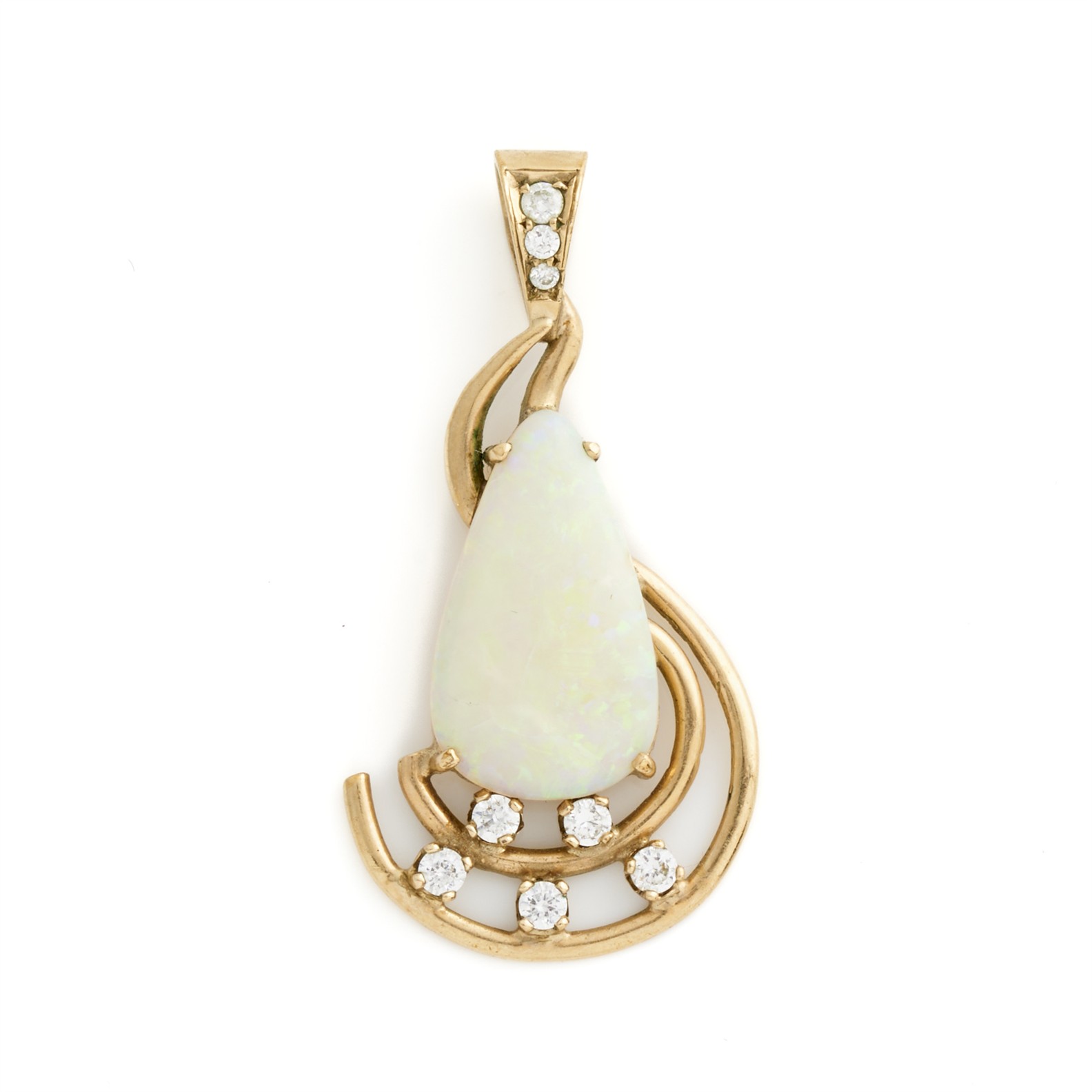 AN OPAL AND GEM SET PENDANT IN 9CT GOLD, 35MM X 15MM, 2.4GMS